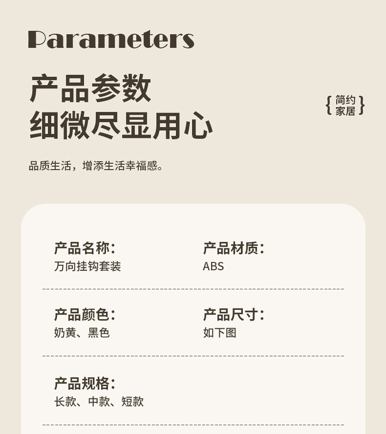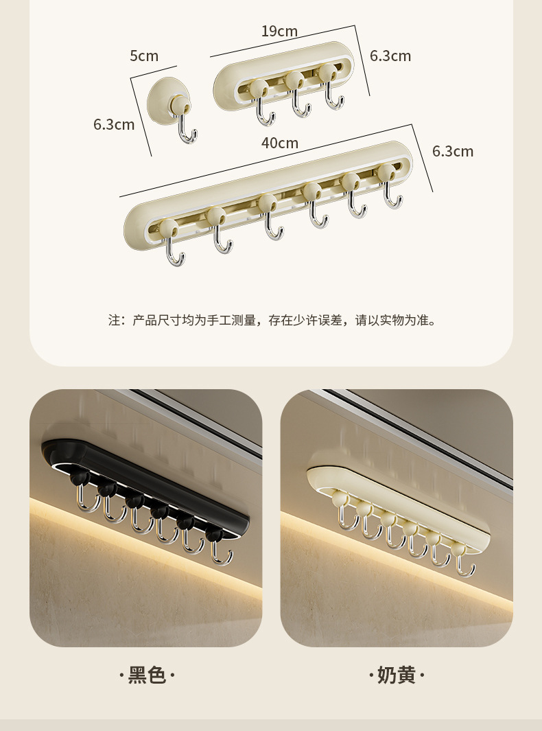 单个包装尺寸:三连19*6.3*4.9cm 六连40*6.3*4.9cm 单钩5*6.3*4.9
