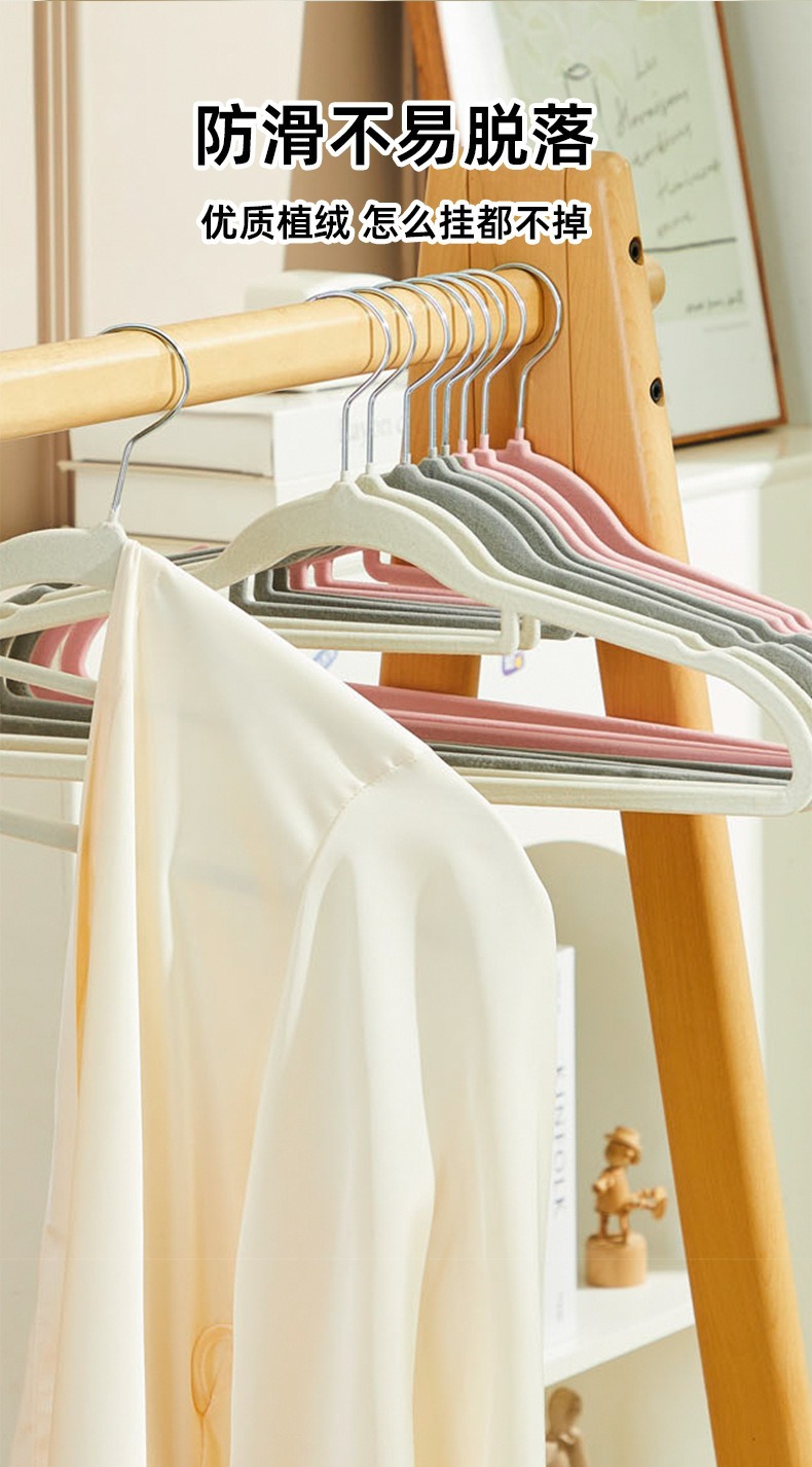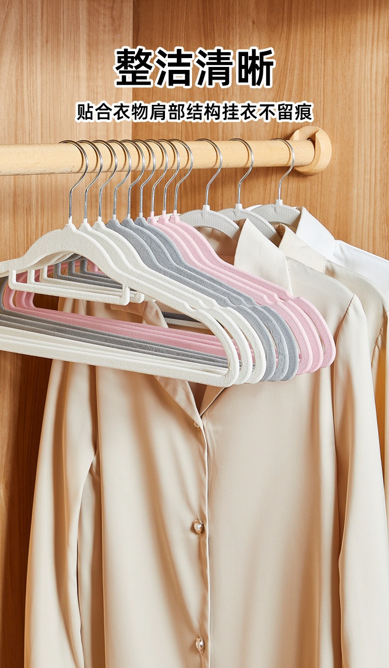 Percha de flocado engrosada Percha de doble propósito para armario antideslizante y sin costuras, en seco y húmedo, percha de secado antihombro