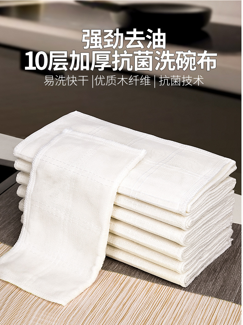Antibacterial plato de tela fábrica al por mayor antiadherente aceite absorbente estropajo Toalla de eliminación de aceite puro algodón no pelusa trapo para Cocina