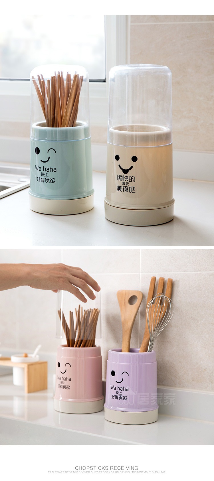 Transparente palillos jaula con tapa extraíble drenando palillos jaula cocina vajilla almacenamiento estante polvo palillos jaula
