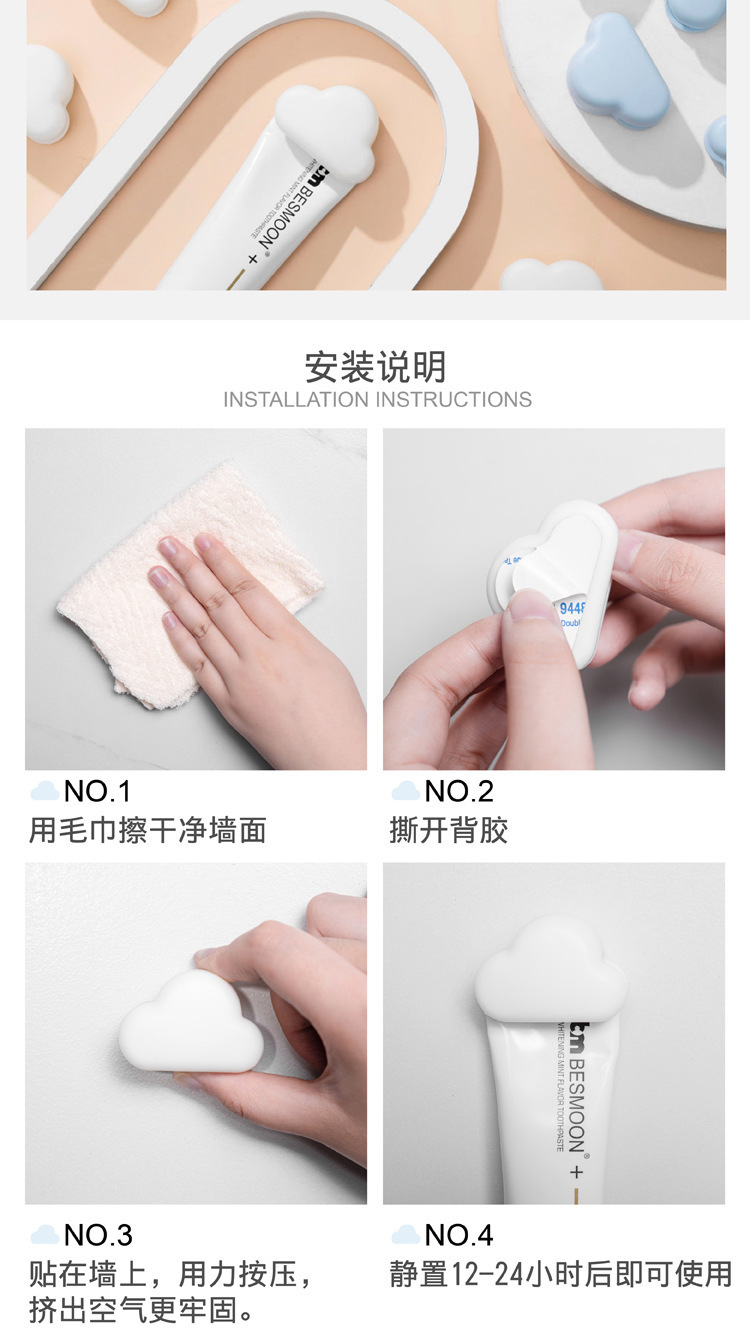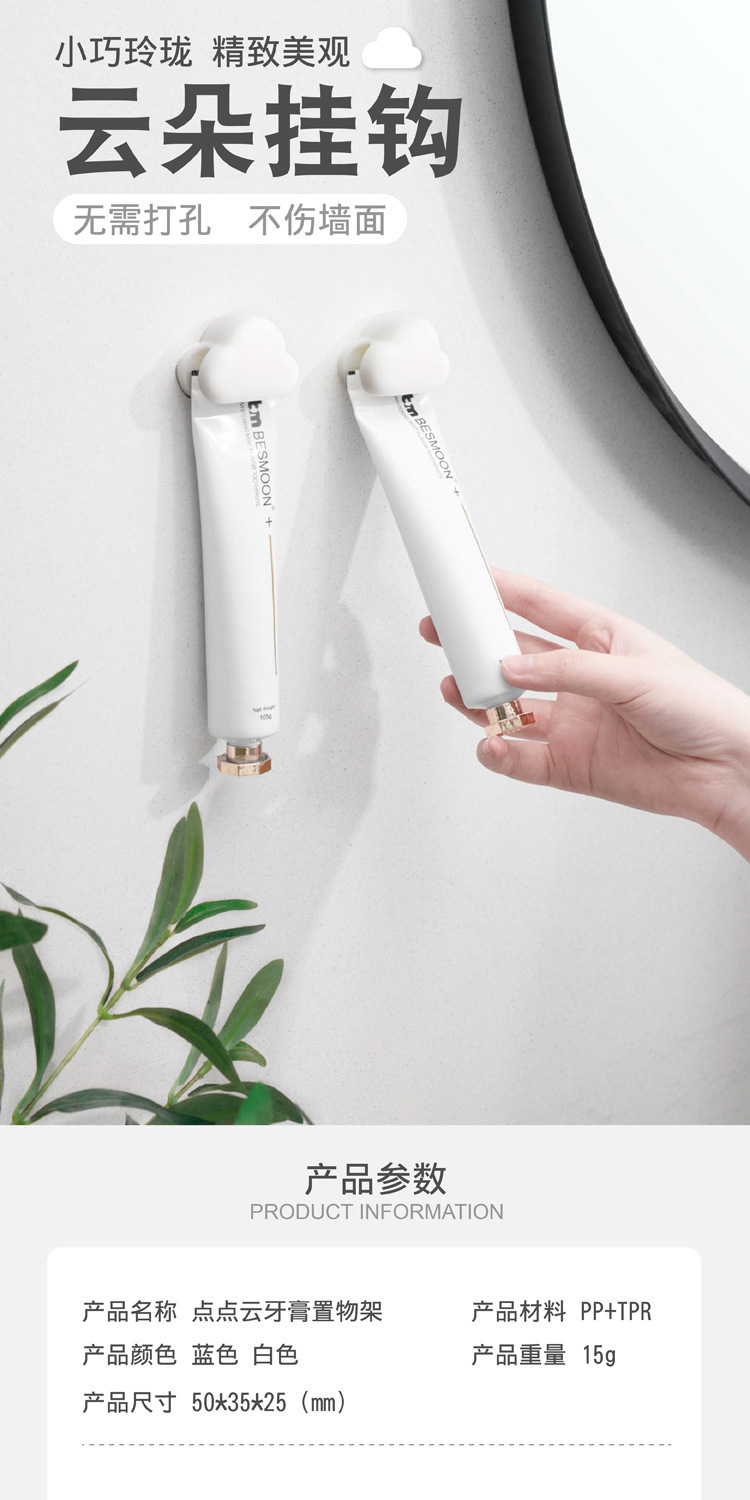 Clip de pasta de dientes de estilo japonés, sin perforación, colgante de pared, extrusión, artefacto de almacenamiento de pasta de dientes, limpiador facial, gancho de pared, estante de baño