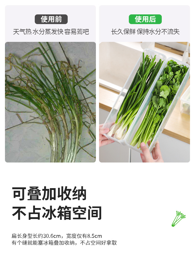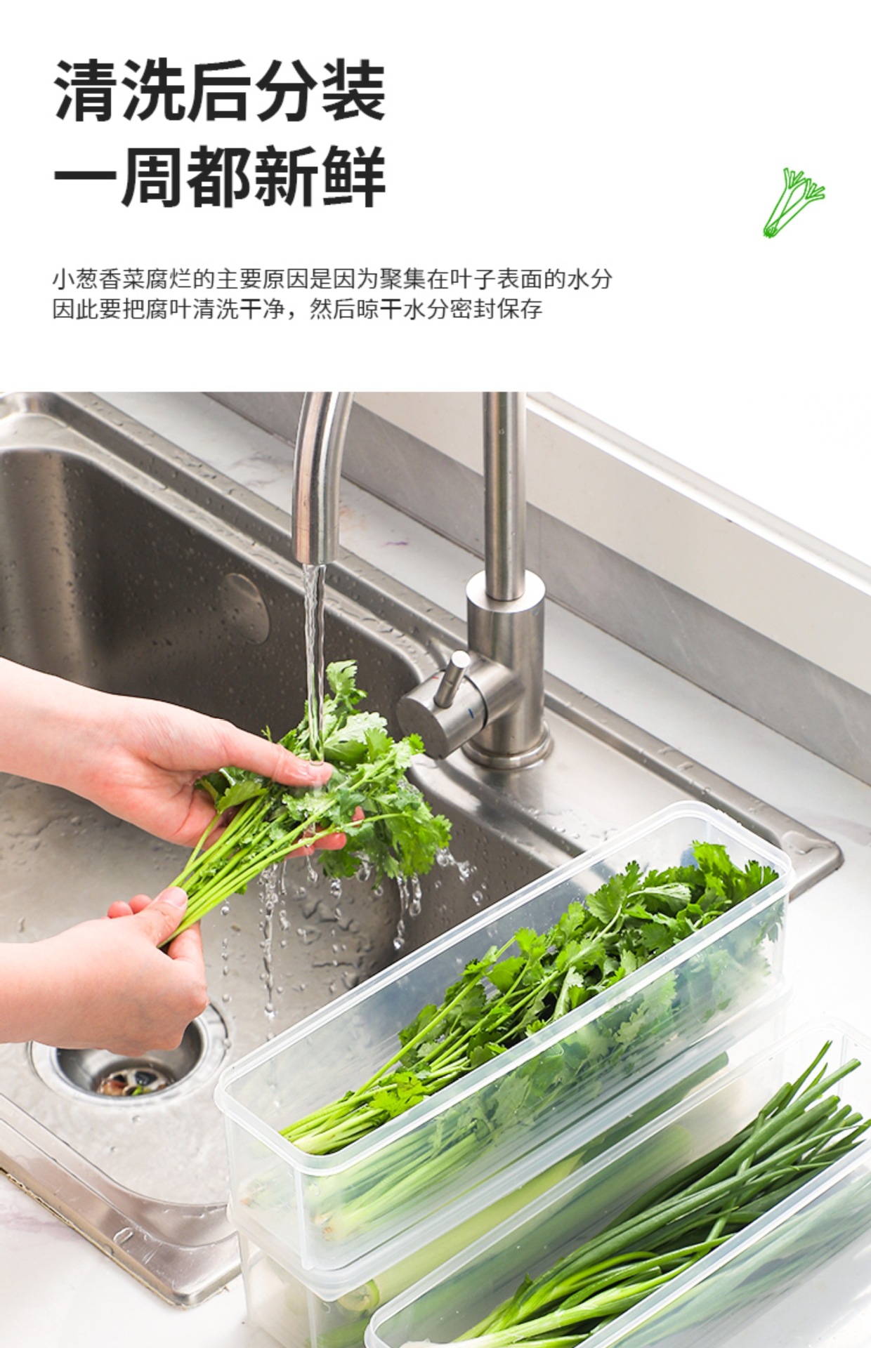 Caja de conservación fresca de grado alimenticio cebolletas, cilantro, cilantro, jengibre entero, fideos de ajo, caja de almacenamiento y acabado de huevos, para refrigerador