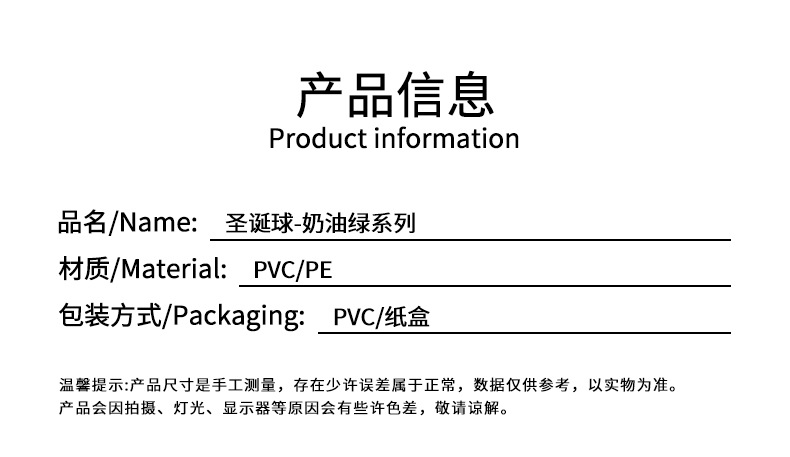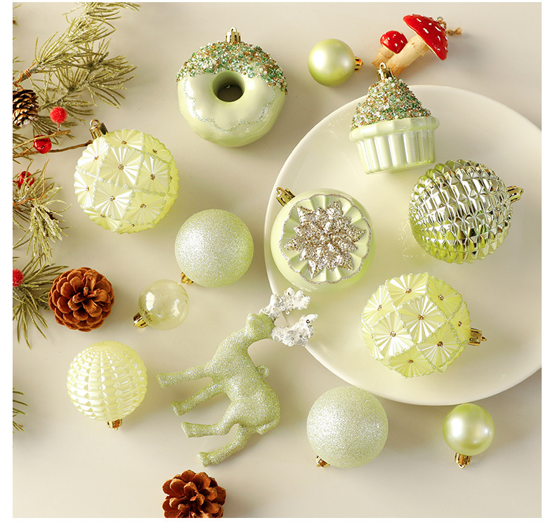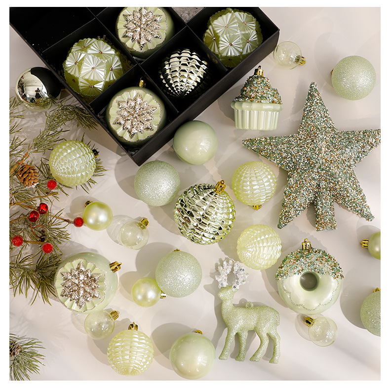 | Color | Estrella de árbol verde crema (todos los árboles de 120 - 240cm están disponibles), 9 pcs. de verde crema de 8cm, 30 pcs. de verde crema de 4cm, 24 pcs. de verde crema de 6cm, 4 pcs. de verde crema de 10cm, 2 pcs. de alce verde crema |