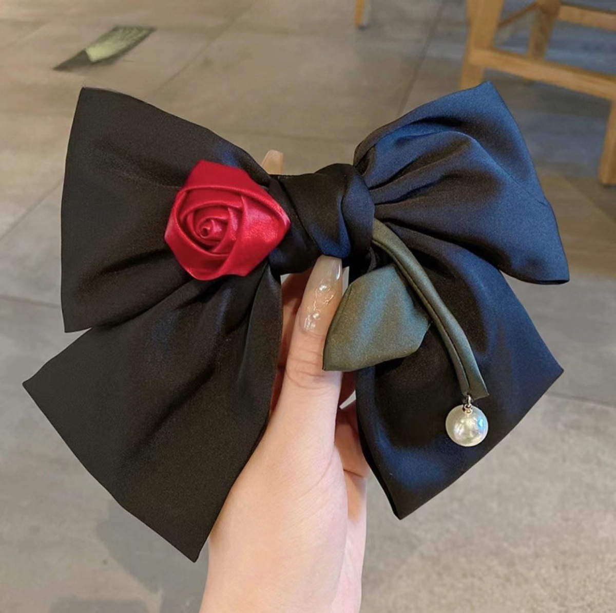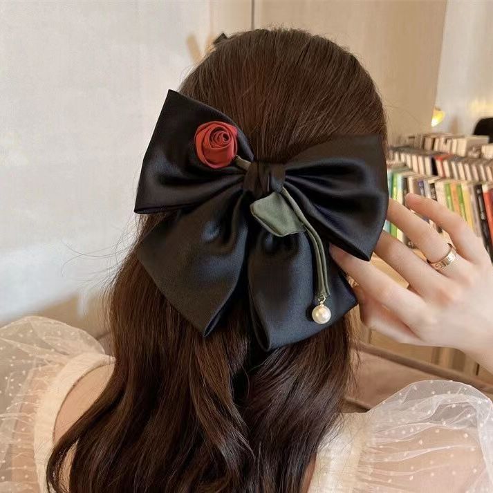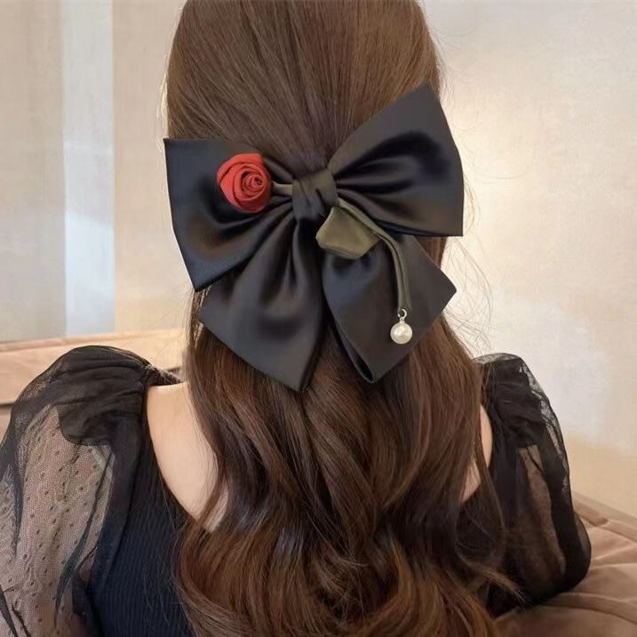 Amado rosa ~ arco negro gran adornos para el cabello 2023 nuevo temperamento de alta gama clip de cabello de mujer detrás de la cabeza clip resorte