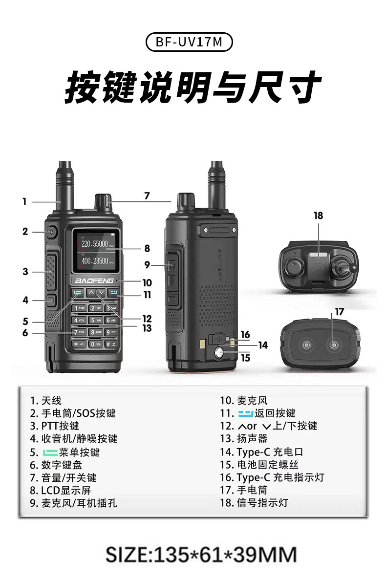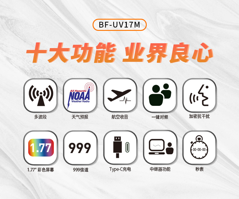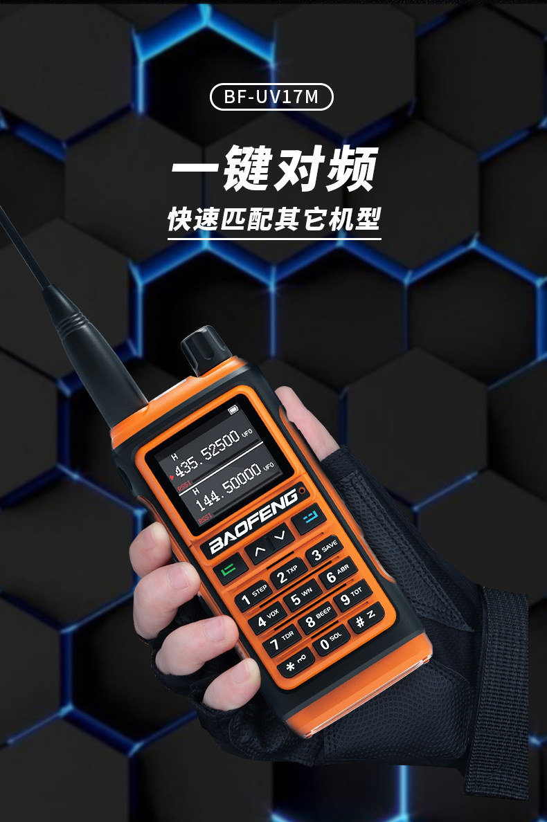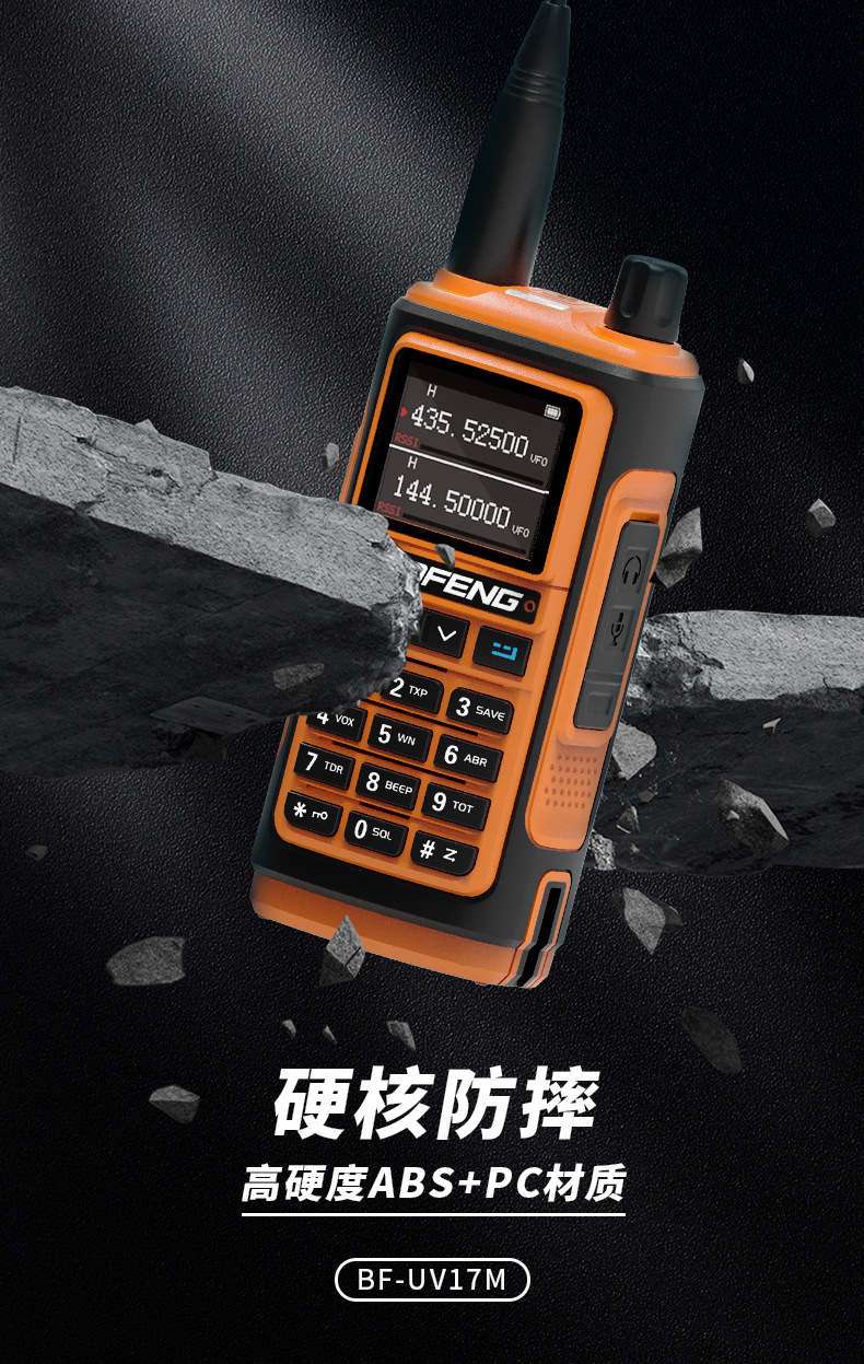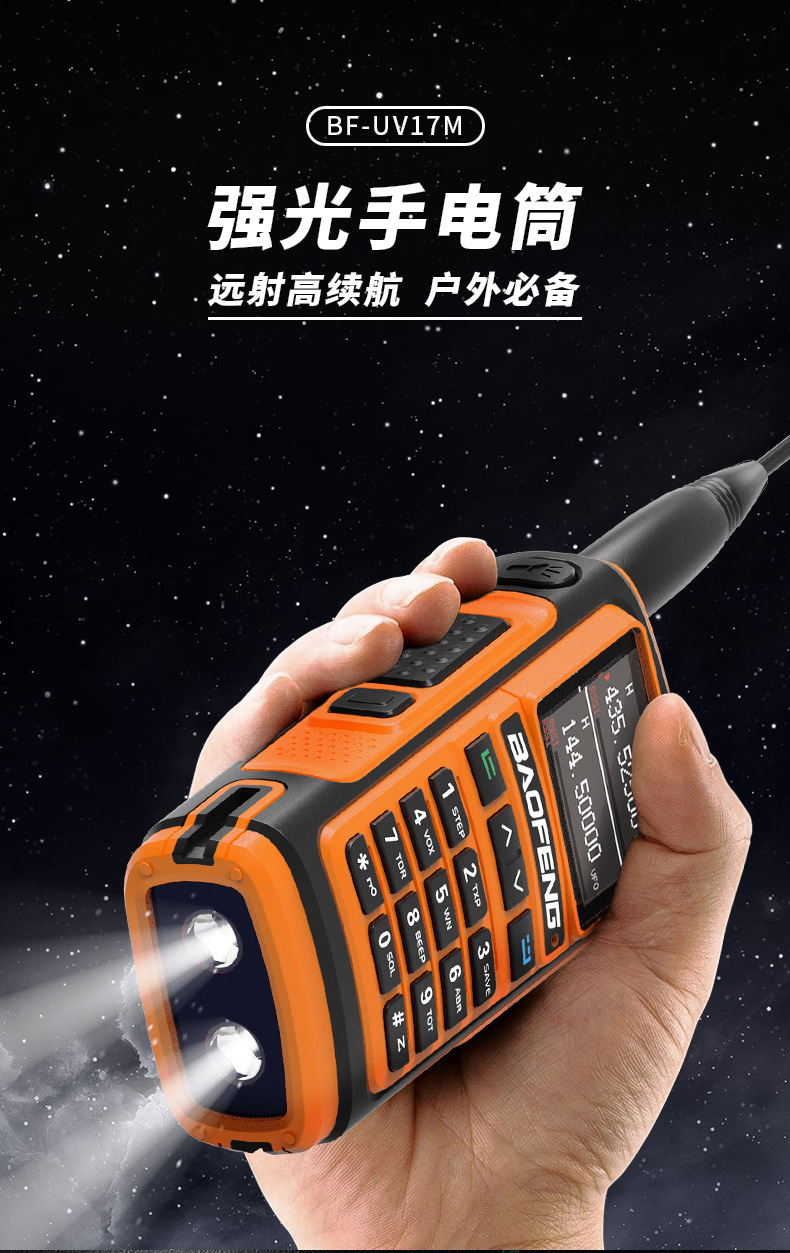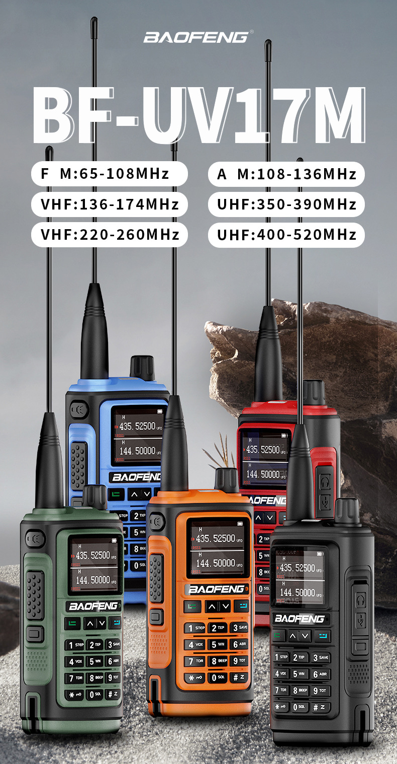 | Colores | UV-17M negro,Naranja UV-17M,UV-17M verde,Rojo UV-17M,Azul UV-17M,UV-17MPRO (versión GPS),Batería UV-17M,Cargador de UV-17M,Antena táctica (47CM),Antena de tubo de ganso,Antena de coche con ventosa grande (0,95 metros de altura) |