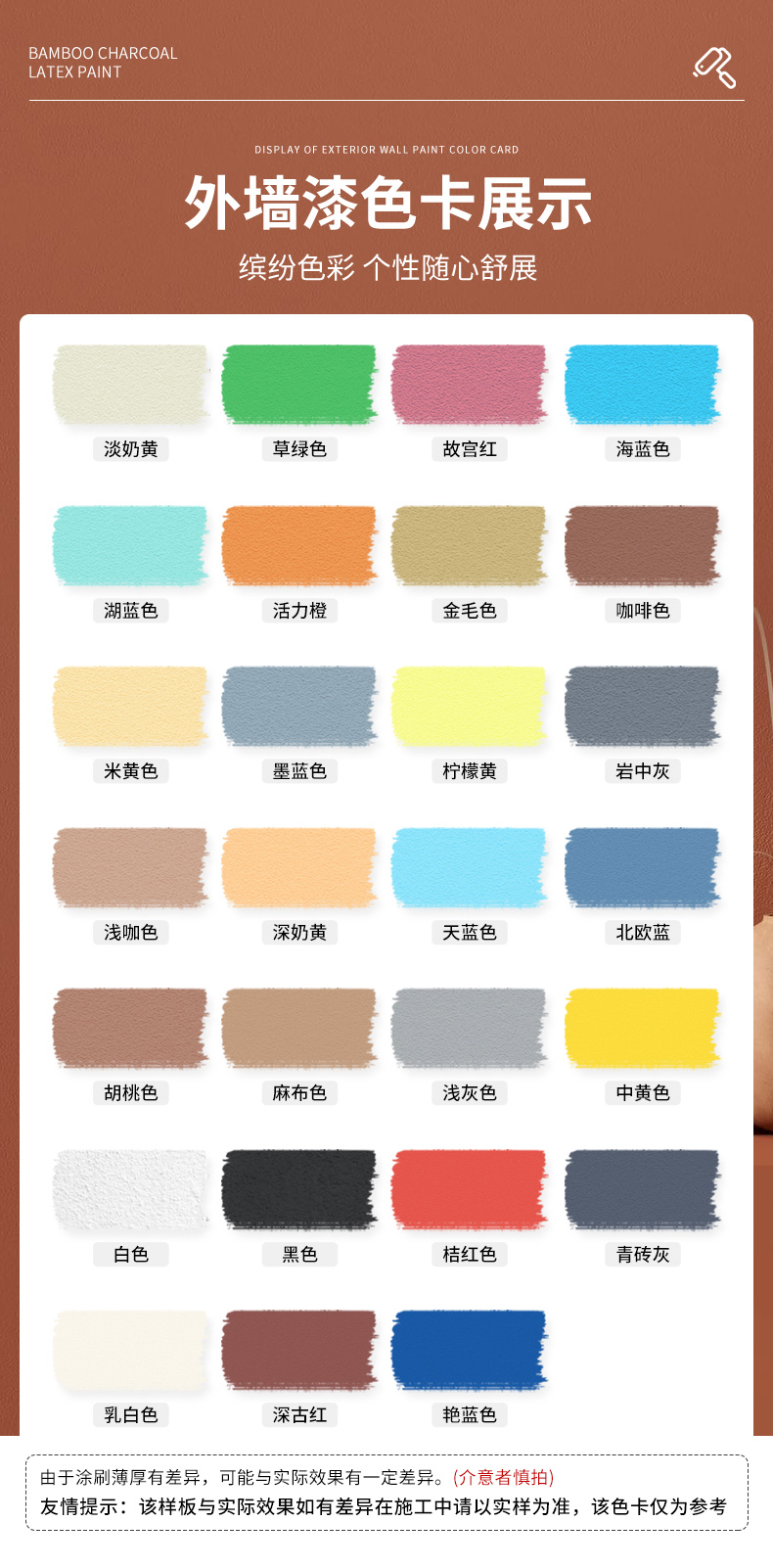 | Especificaciones y modelos | 防水防晒不褪色(北欧蓝)送滚筒-1kg,防水防晒不褪色(北欧蓝)送滚筒-4kg,防水防晒不褪色(北欧蓝)送滚筒-10kg,防水防晒不褪色(北欧蓝)送滚筒-15kg,防水防晒不褪色(北欧蓝)送滚筒-20kg,防水防晒不褪色(乳白色)送滚筒-1kg,防水防晒不褪色(乳白色)送滚筒-4kg,防水防晒不褪色(乳白色)送滚筒-10kg,防水防晒不褪色(乳白色)送滚筒-15kg,防水防晒不褪色(乳白色)送滚筒-20kg,防水防晒不褪色(白色)送滚筒-1kg,防水防晒不褪色(白色)送滚筒-4kg,防水防晒不褪色(白色)送滚筒-10kg,防水防晒不褪色(白色)送滚筒-15kg,防水防晒不褪色(白色)送滚筒-20kg,防水防晒不褪色(米黄色)送滚筒-1kg,防水防晒不褪色(米黄色)送滚筒-4kg,防水防晒不褪色(米黄色)送滚筒-10kg,防水防晒不褪色(米黄色)送滚筒-15kg,防水防晒不褪色(米黄色)送滚筒-20kg,防水防晒不褪色(胡桃色)送滚筒-1kg,防水防晒不褪色(胡桃色)送滚筒-4kg,防水防晒不褪色(胡桃色)送滚筒-10kg,防水防晒不褪色(胡桃色)送滚筒-15kg,防水防晒不褪色(胡桃色)送滚筒-20kg,防水防晒不褪色(麻布色)送滚筒-1kg,防水防晒不褪色(麻布色)送滚筒-4kg,防水防晒不褪色(麻布色)送滚筒-10kg,防水防晒不褪色(麻布色)送滚筒-15kg,防水防晒不褪色(麻布色)送滚筒-20kg,防水防晒不褪色(金毛色)送滚筒-1kg,防水防晒不褪色(金毛色)送滚筒-4kg,防水防晒不褪色(金毛色)送滚筒-10kg,防水防晒不褪色(金毛色)送滚筒-15kg,防水防晒不褪色(金毛色)送滚筒-20kg,防水防晒不褪色(岩中灰)送滚筒-1kg,防水防晒不褪色(岩中灰)送滚筒-4kg,防水防晒不褪色(岩中灰)送滚筒-10kg,防水防晒不褪色(岩中灰)送滚筒-15kg,防水防晒不褪色(岩中灰)送滚筒-20kg,防水防晒不褪色(桔红色)送滚筒-1kg,防水防晒不褪色(桔红色)送滚筒-4kg,防水防晒不褪色(桔红色)送滚筒-10kg,防水防晒不褪色(桔红色)送滚筒-15kg,防水防晒不褪色(桔红色)送滚筒-20kg,防水防晒不褪色(浅咖色)送滚筒-1kg,防水防晒不褪色(浅咖色)送滚筒-4kg,防水防晒不褪色(浅咖色)送滚筒-10kg,防水防晒不褪色(浅咖色)送滚筒-15kg,防水防晒不褪色(浅咖色)送滚筒-20kg,防水防晒不褪色(咖啡色)送滚筒-1kg,防水防晒不褪色(咖啡色)送滚筒-4kg,防水防晒不褪色(咖啡色)送滚筒-10kg,防水防晒不褪色(咖啡色)送滚筒-15kg,防水防晒不褪色(咖啡色)送滚筒-20kg,防水防晒不褪色(淡奶黄)送滚筒-1kg,防水防晒不褪色(淡奶黄)送滚筒-4kg,防水防晒不褪色(淡奶黄)送滚筒-10kg,防水防晒不褪色(淡奶黄)送滚筒-15kg,防水防晒不褪色(淡奶黄)送滚筒-20kg,防水防晒不褪色(深奶黄)送滚筒-1kg,防水防晒不褪色(深奶黄)送滚筒-4kg,防水防晒不褪色(深奶黄)送滚筒-10kg,防水防晒不褪色(深奶黄)送滚筒-15kg,防水防晒不褪色(深奶黄)送滚筒-20kg,防水防晒不褪色(天空蓝)送滚筒-1kg,防水防晒不褪色(天空蓝)送滚筒-4kg,防水防晒不褪色(天空蓝)送滚筒-10kg,防水防晒不褪色(天空蓝)送滚筒-15kg,防水防晒不褪色(天空蓝)送滚筒-20kg,防水防晒不褪色(柠檬黄)送滚筒-1kg,防水防晒不褪色(柠檬黄)送滚筒-4kg,防水防晒不褪色(柠檬黄)送滚筒-10kg,防水防晒不褪色(柠檬黄)送滚筒-15kg,防水防晒不褪色(柠檬黄)送滚筒-20kg,防水防晒不褪色(活力橙)送滚筒-1kg,防水防晒不褪色(活力橙)送滚筒-4kg,防水防晒不褪色(活力橙)送滚筒-10kg,防水防晒不褪色(活力橙)送滚筒-15kg,防水防晒不褪色(活力橙)送滚筒-20kg,防水防晒不褪色(草绿色)送滚筒-1kg,防水防晒不褪色(草绿色)送滚筒-4kg,防水防晒不褪色(草绿色)送滚筒-10kg,防水防晒不褪色(草绿色)送滚筒-15kg,防水防晒不褪色(草绿色)送滚筒-20kg,防水防晒不褪色(湖蓝色)送滚筒-1kg,防水防晒不褪色(湖蓝色)送滚筒-4kg,防水防晒不褪色(湖蓝色)送滚筒-10kg,防水防晒不褪色(湖蓝色)送滚筒-15kg,防水防晒不褪色(湖蓝色)送滚筒-20kg,防水防晒不褪色(黑色)送滚筒-1kg,防水防晒不褪色(黑色)送滚筒-4kg,防水防晒不褪色(黑色)送滚筒-10kg,防水防晒不褪色(黑色)送滚筒-15kg,防水防晒不褪色(黑色)送滚筒-20kg,防水防晒不褪色(浅灰色)送滚筒-1kg,防水防晒不褪色(浅灰色)送滚筒-4kg,防水防晒不褪色(浅灰色)送滚筒-10kg,防水防晒不褪色(浅灰色)送滚筒-15kg,防水防晒不褪色(浅灰色)送滚筒-20kg,防水防晒不褪色(海蓝色)送滚筒-1kg,防水防晒不褪色(海蓝色)送滚筒-4kg,防水防晒不褪色(海蓝色)送滚筒-10kg,防水防晒不褪色(海蓝色)送滚筒-15kg,防水防晒不褪色(海蓝色)送滚筒-20kg,防水防晒不褪色(墨蓝色)送滚筒-1kg,防水防晒不褪色(墨蓝色)送滚筒-4kg,防水防晒不褪色(墨蓝色)送滚筒-10kg,防水防晒不褪色(墨蓝色)送滚筒-15kg,防水防晒不褪色(墨蓝色)送滚筒-20kg,防水防晒不褪色(故宫红)送滚筒-1kg,防水防晒不褪色(故宫红)送滚筒-4kg,防水防晒不褪色(故宫红)送滚筒-10kg,防水防晒不褪色(故宫红)送滚筒-15kg,防水防晒不褪色(故宫红)送滚筒-20kg,防水防晒不褪色(深古红)送滚筒-1kg,防水防晒不褪色(深古红)送滚筒-4kg,防水防晒不褪色(深古红)送滚筒-10kg,防水防晒不褪色(深古红)送滚筒-15kg,防水防晒不褪色(深古红)送滚筒-20kg,防水防晒不褪色(艳蓝色)送滚筒-1kg,防水防晒不褪色(艳蓝色)送滚筒-4kg,防水防晒不褪色(艳蓝色)送滚筒-10kg,防水防晒不褪色(艳蓝色)送滚筒-15kg,防水防晒不褪色(艳蓝色)送滚筒-20kg,防水防晒不褪色(中黄色)送滚筒-1kg,防水防晒不褪色(中黄色)送滚筒-4kg,防水防晒不褪色(中黄色)送滚筒-10kg,防水防晒不褪色(中黄色)送