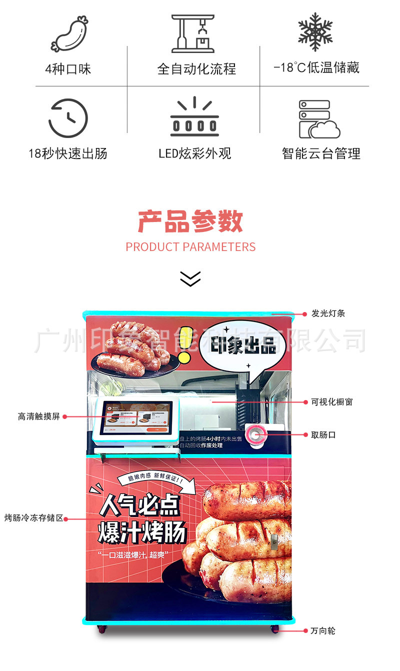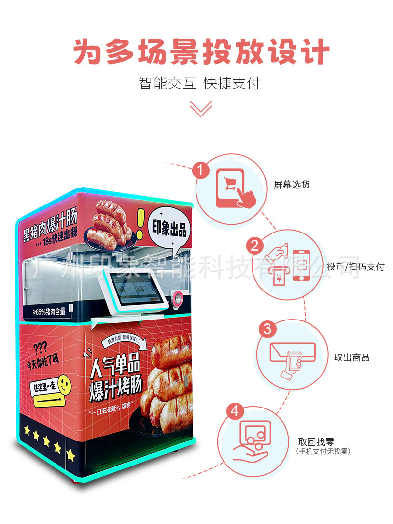 Impression Smart Salchicha Máquina expendedora Reabastecimiento automático las 24 horas Máquina expendedora automática para salchicha