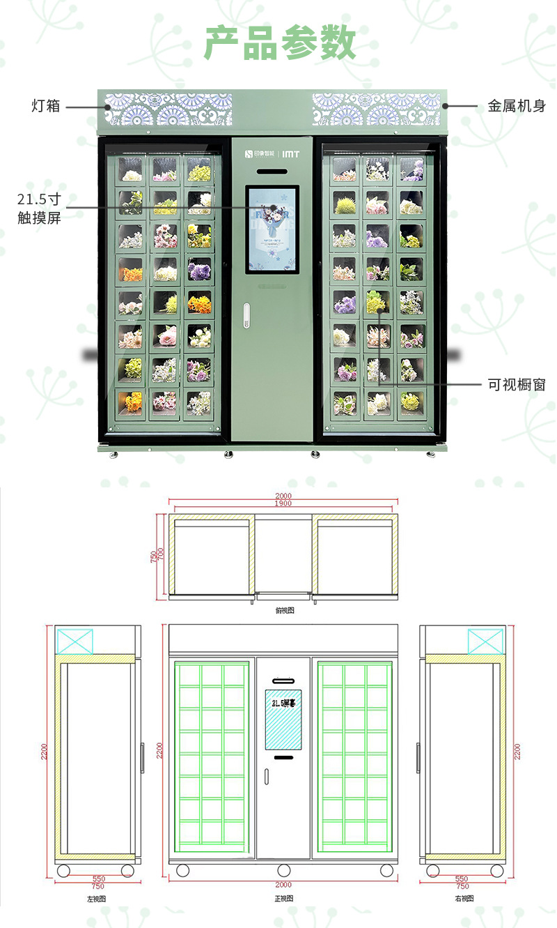 | Especificaciones | Máquina expendedora de flores de gabinete a cuadros (depósito) |
