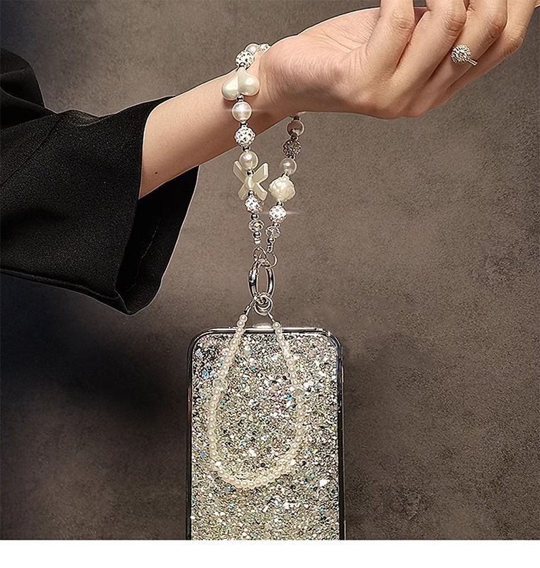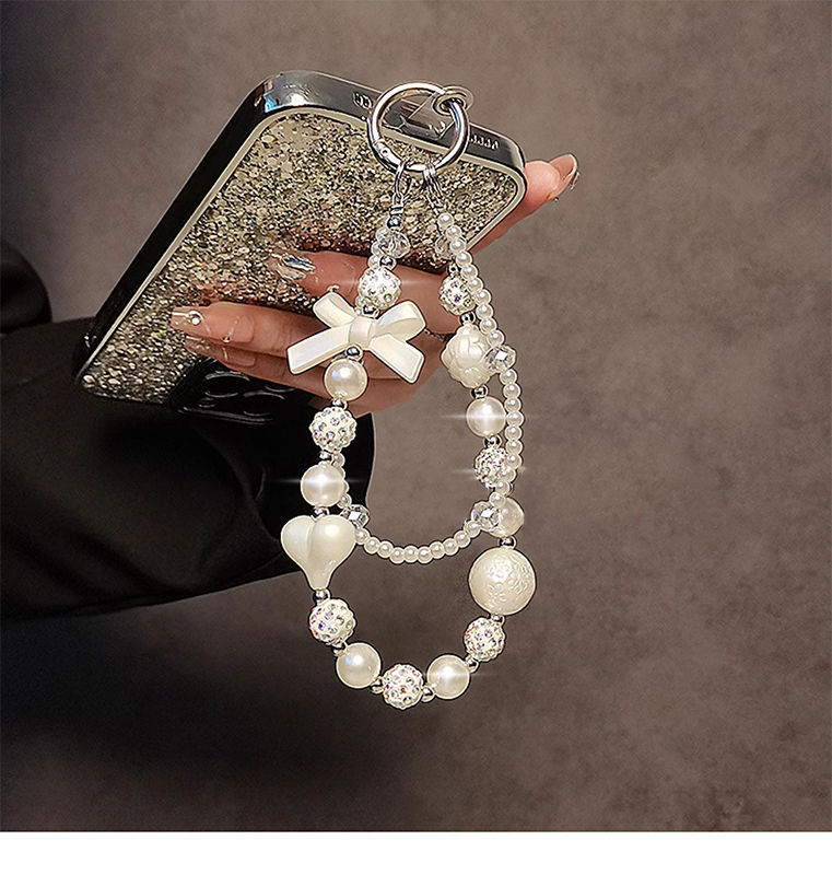 Personalidad creativa diamante perlas cuentas pulsera pulsera corta colgante caso de teléfono móvil llavero de automóvil bolsos colgante