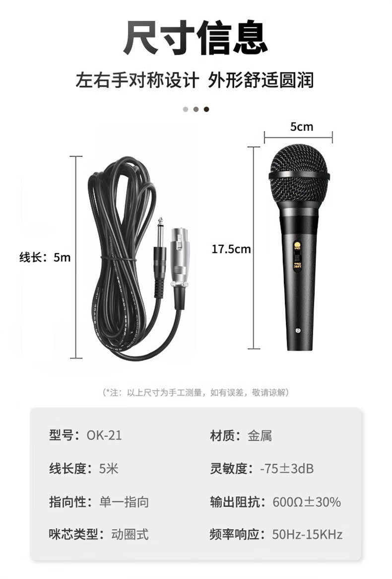 | Color | OK - 01 cable K-Goma (enchufe de 65 mm), OK - 65 cable K-Goma (enchufe de 65 mm), OK - 09 cable K-Goma de oro (enchufe de 65 mm), OK - 21 metal K-Goma anfitrión (enchufe de 65 mm), OK - 61 micrófono de metal (con caja portátil) |