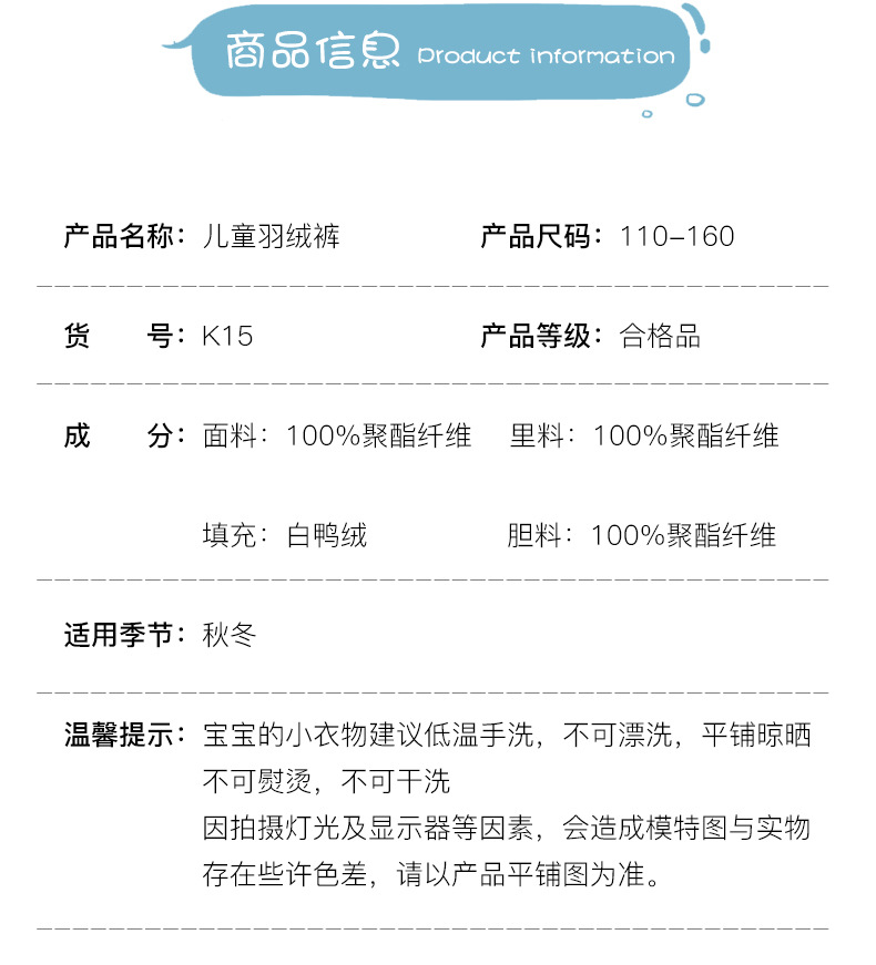 | Categoría del producto | Chaqueta de plumón infantil / interior de plumón |