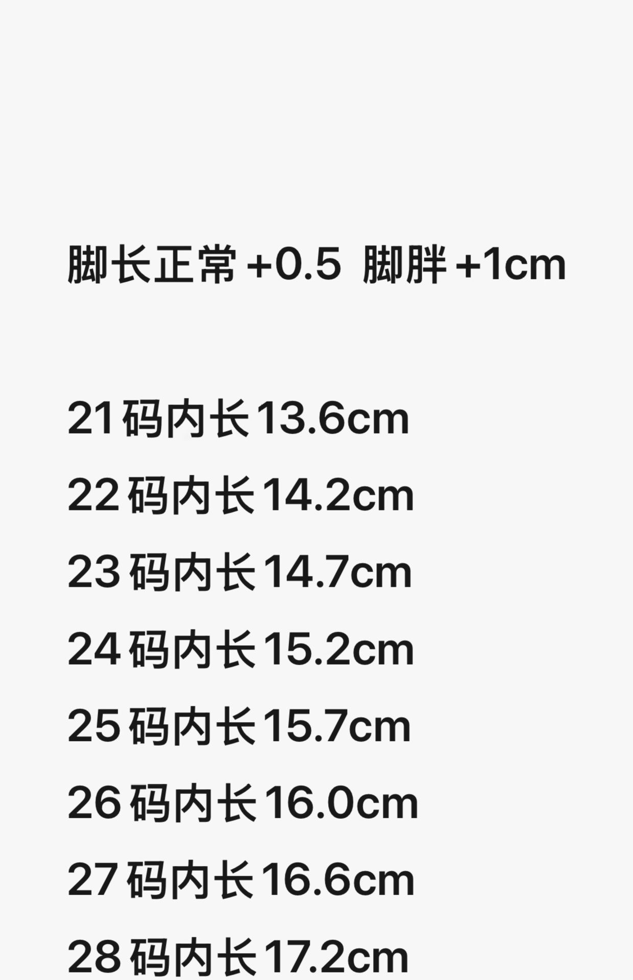 | Talla | 21 yardas (13.6 cm de longitud interna), 22 yardas (14.2 cm de longitud interna), 23 yardas (14.7 cm de longitud interna), 24 yardas (15.2 cm de longitud interna), 25 yardas (15.7 cm de longitud interna), 26 yardas (16.0 cm de longitud interna), 27 yardas (16.6 cm de longitud interna), 28 yardas (17.2 cm de longitud interna), 29 yardas (17.8 cm de longitud interna), 30 yardas (17.8 cm de longitud interna), [Yardas promedio] |