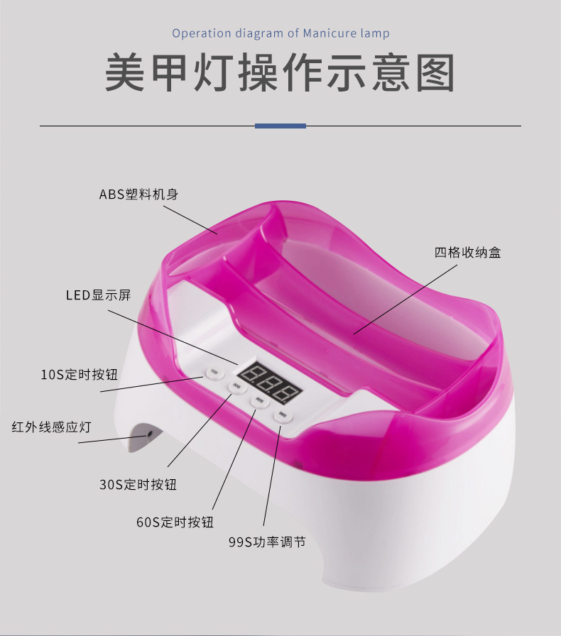 Nueva máquina de fototerapia de uñas herramienta de uñas con función de almacenamiento lámpara de uñas de alta potencia lámpara de hornear de uñas al por mayor