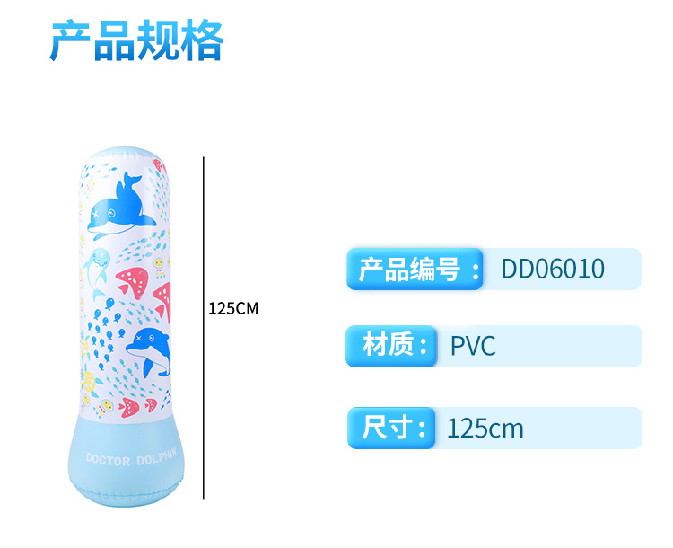 Doctor Dolphin | Columna de boxeo inflable para niños 125cm Columna de boxeo para niños Vaso vertical cilíndrico