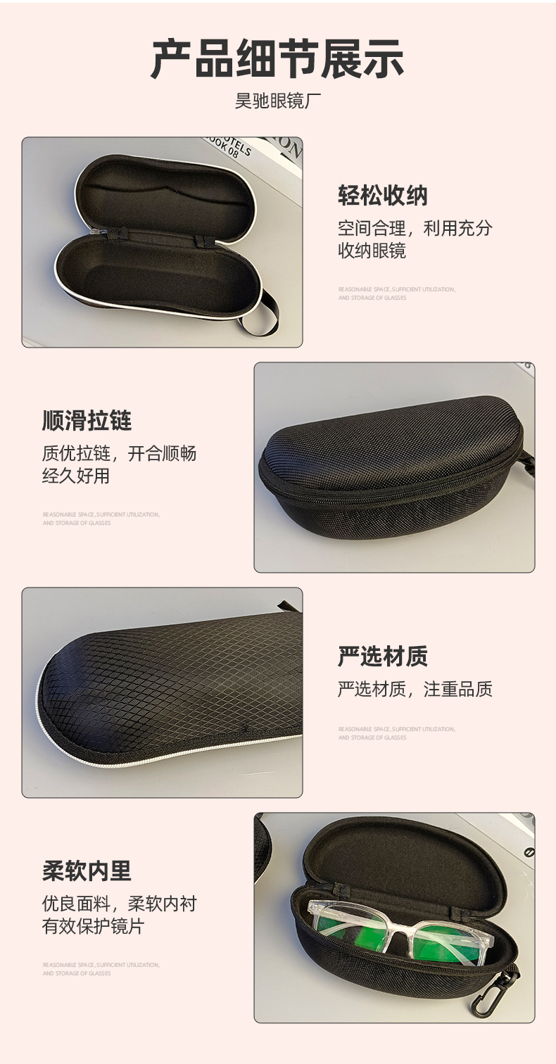 Negro gafas bolsa cremallera ligera gafas de sol bolsa de almacenamiento impreso logo gafas caja de almacenamiento