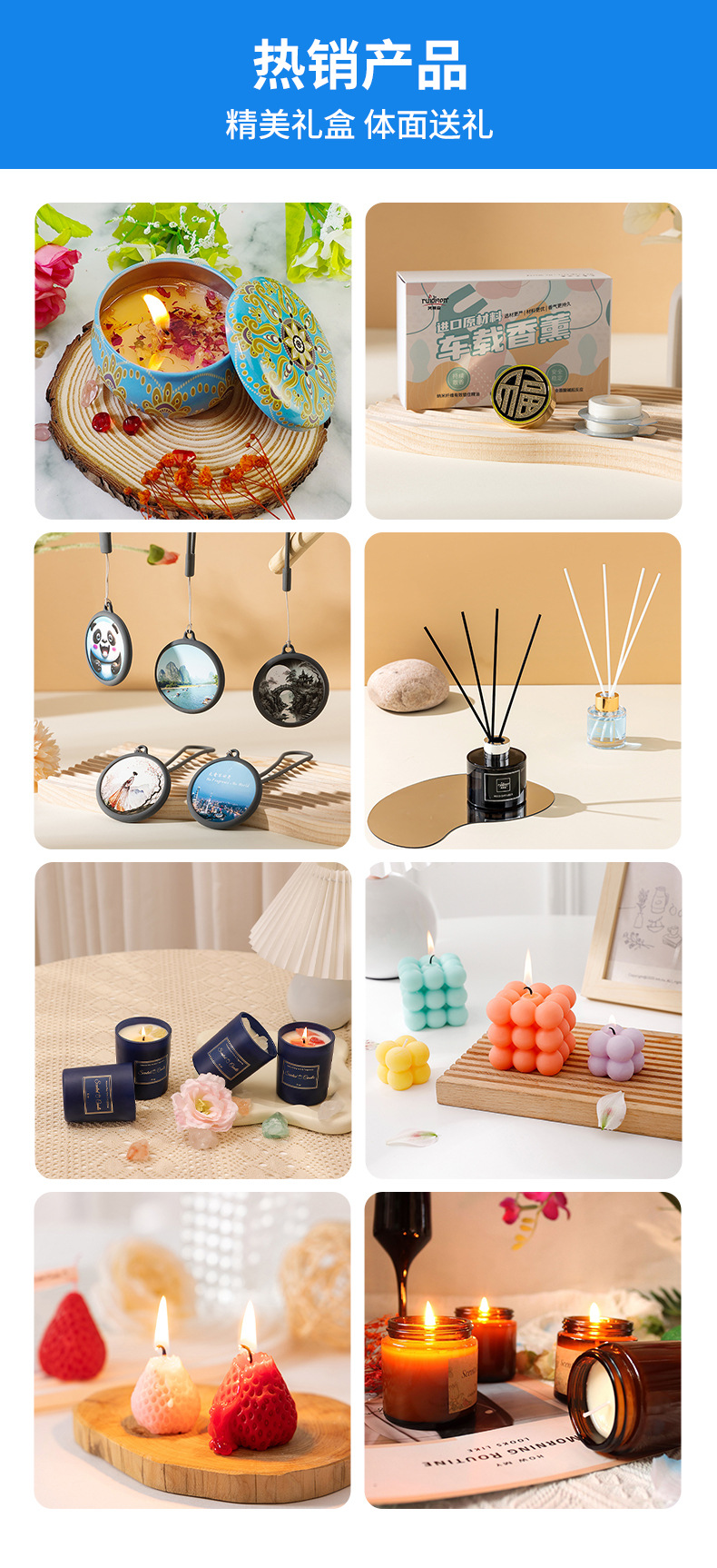Caja de aluminio flor seca vela de perfume cross-border regalo de mano cera de soja colorido cristal hecho a mano regalo de mano cera de banano
