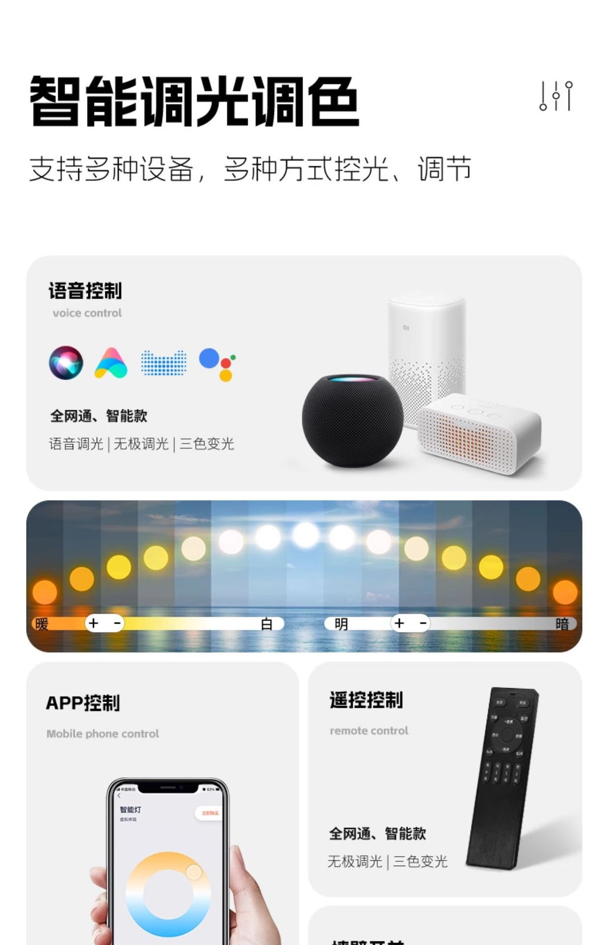 | Colores de luz | Luz variable de tres colores [protección ocular de espectro completo],Admite atenuación infinita Tmall Wizard [Protección ocular de espectro completo],Atenuación continua: conectado a la aplicación Mijia [protección ocular de espectro completo] |