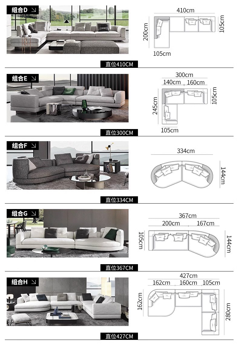 | Forma de combinación de sofás | Arco |
