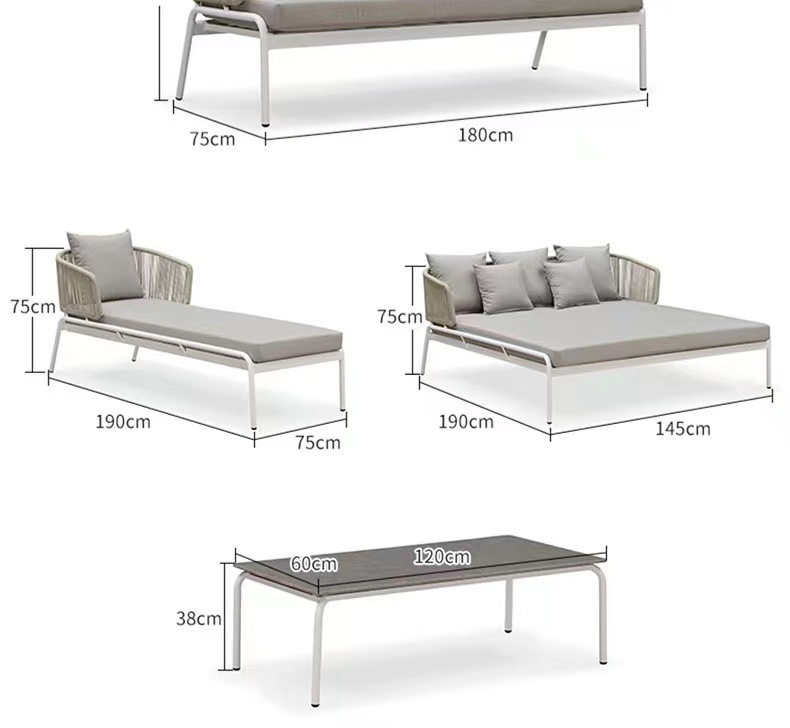 | Color | 2 individuales + 1 doble + 1 Mesa de café, 2 individuales + 1 triple + 1 Mesa de café, sofá individual, sofá doble, sofá triple, cama tumbada, Mesa de café larga de pizarra |
