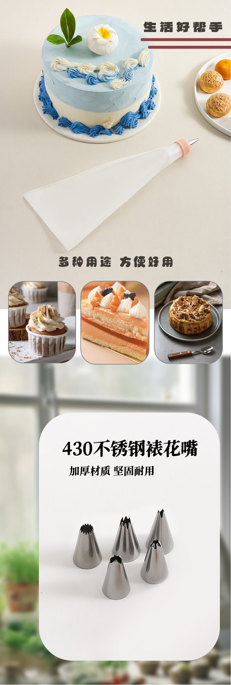 Conjunto de herramientas de enmarcado de flores pastel horneado decoración galletas de extrusión de flores boquilla de enmarcado de flores convertidor de bolsa de diez piezas