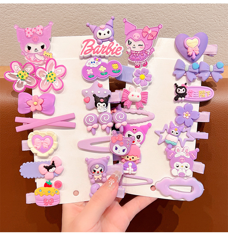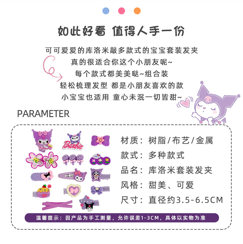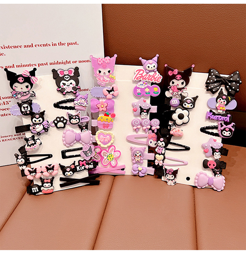 | Color | Juego de 14 piezas de horquillas de amor de kulomi rosa púrpura, juego de 14 piezas de horquillas de flores de estrellas de kulomi púrpura, juego de 14 piezas de horquillas de lazo de kulomi negro y juego de 14 piezas de horquillas de máquina de juegos de kulomi negro |