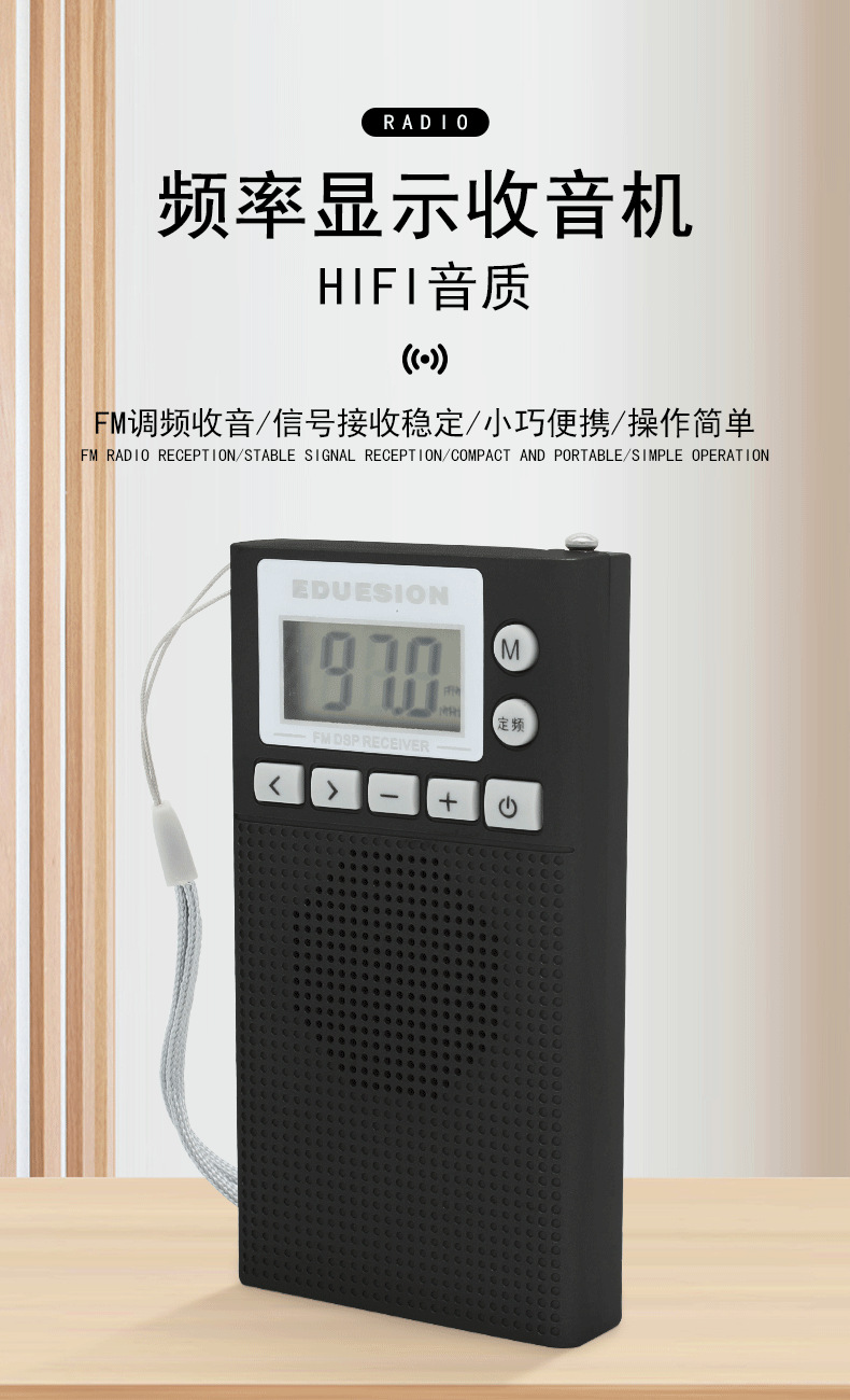 Nuevos productos transfronterizos DSP portátil mini radio FM conferencia de bolsillo fuente de comercio exterior receptor de frecuencia