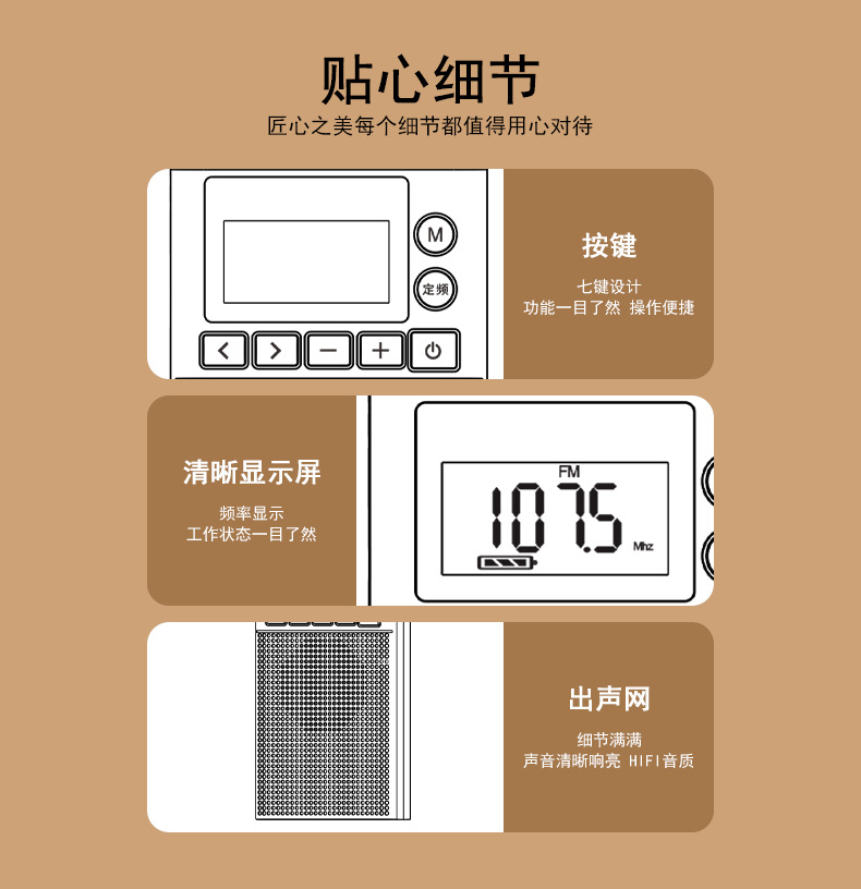 Han Rongda 603 Tarjeta FM portátil para personas mayores, reproducción externa, grabación de audio, radio, reproducción de música Bluetooth