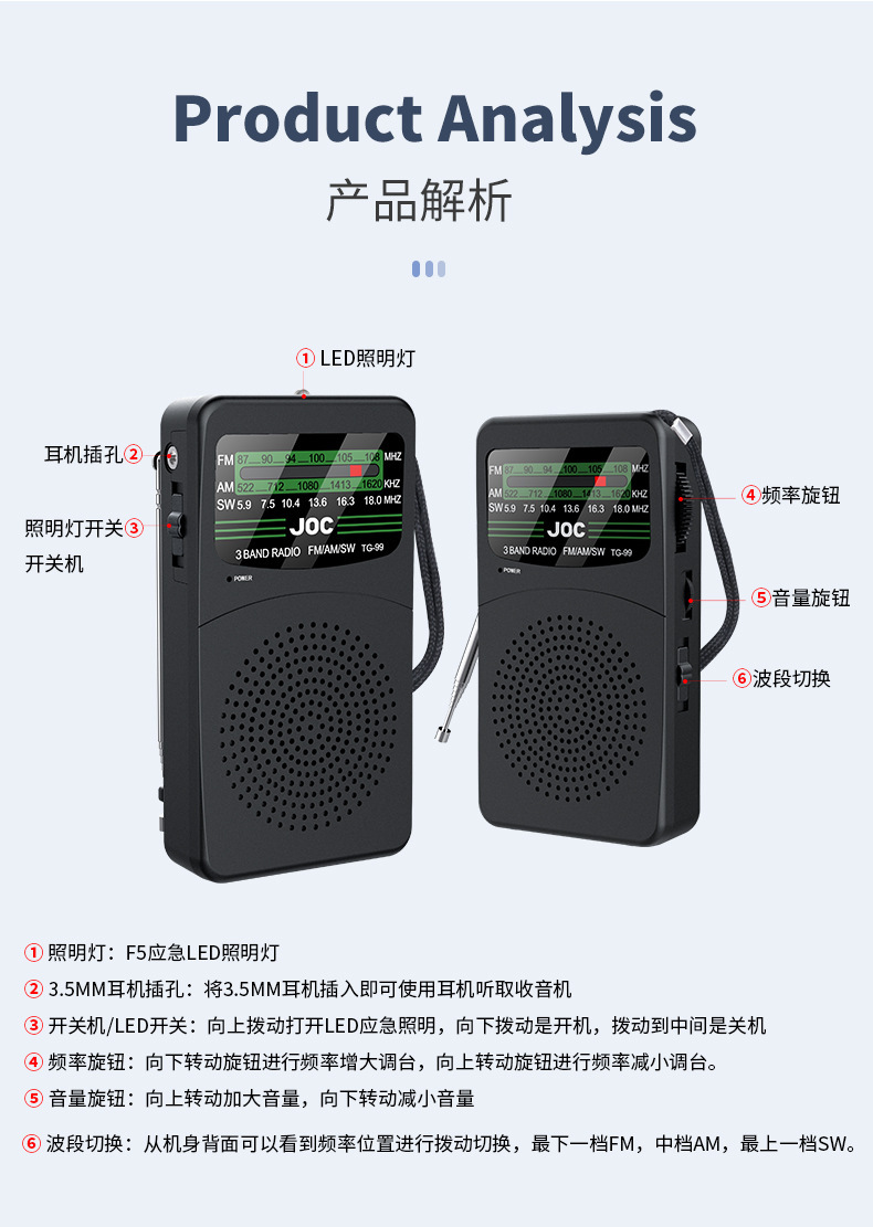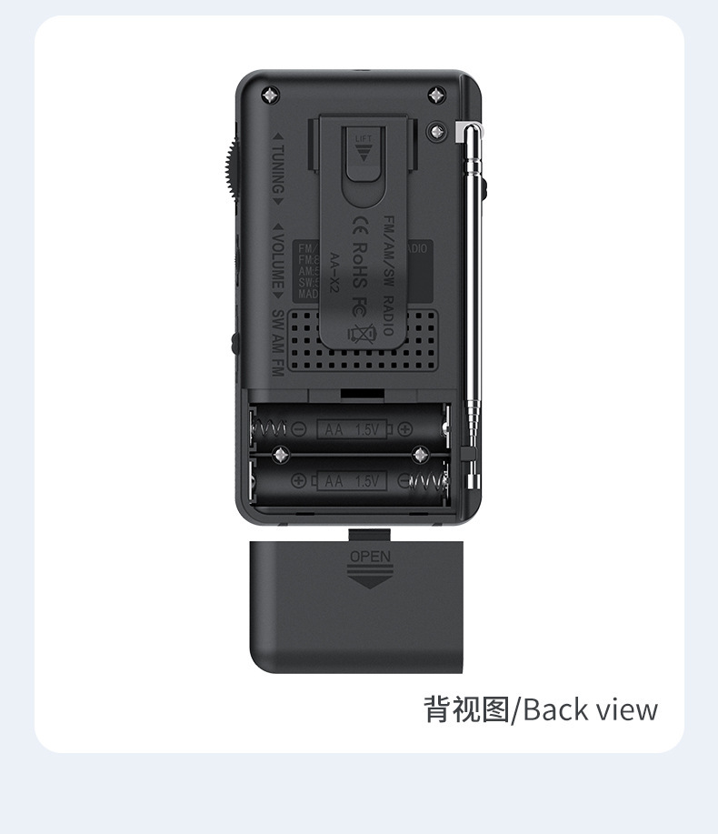 Radio de dos bandas al por mayor transfronteriza Mini fuente de alimentación de batería seca portátil Adecuado para deportes al aire libre sin FM externo