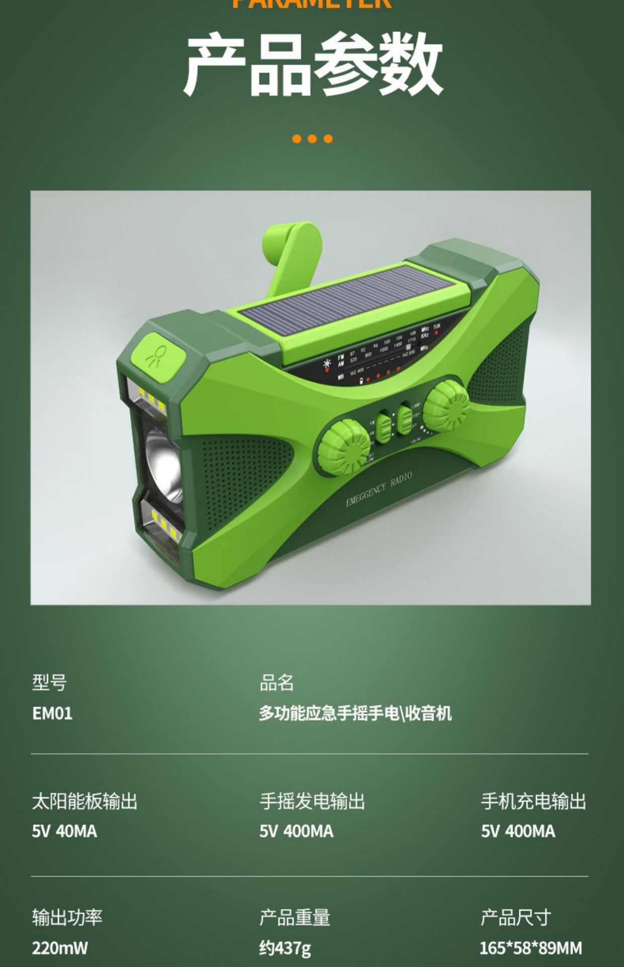 1.产品名称:应急手摇发电收音机