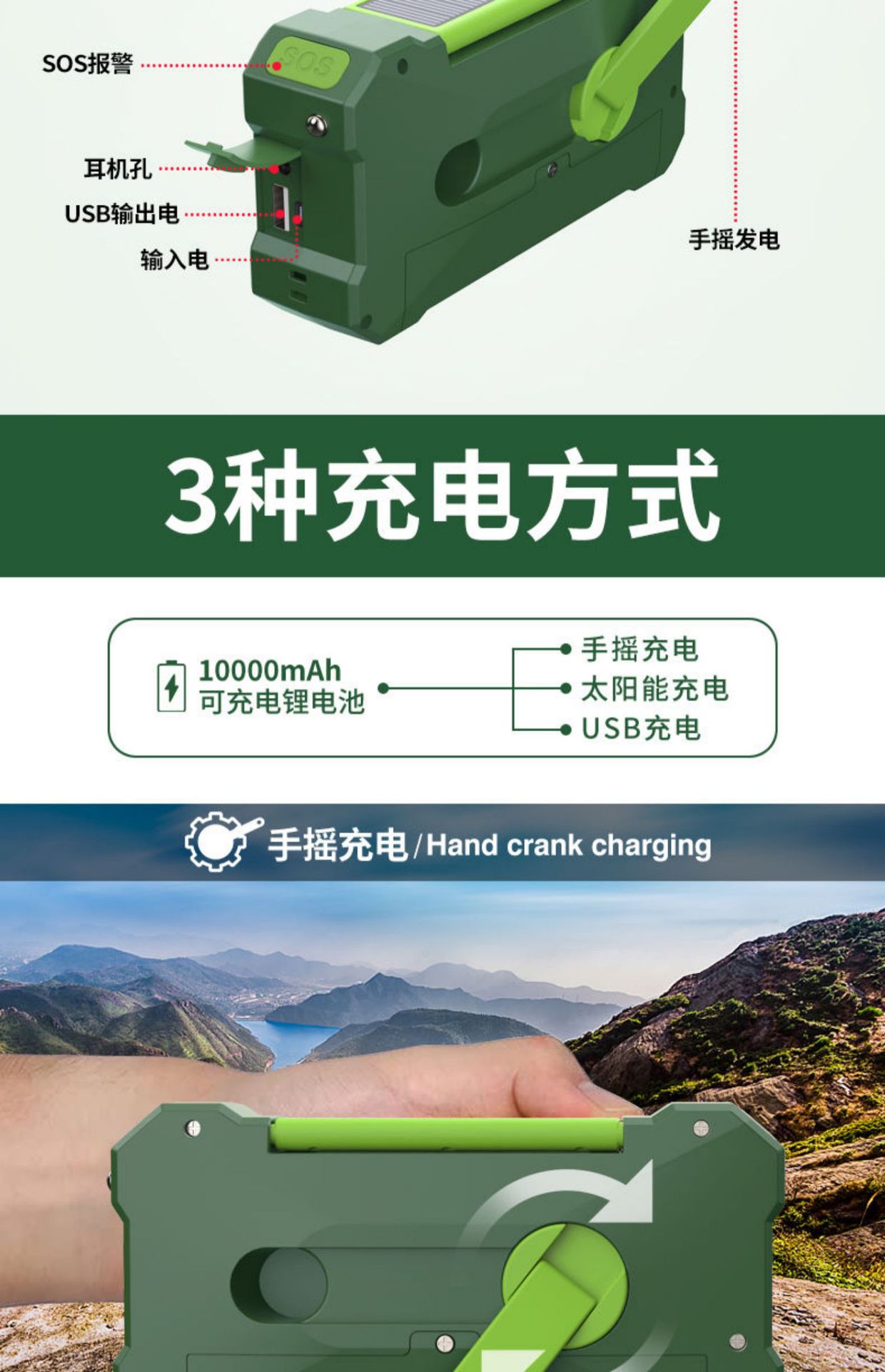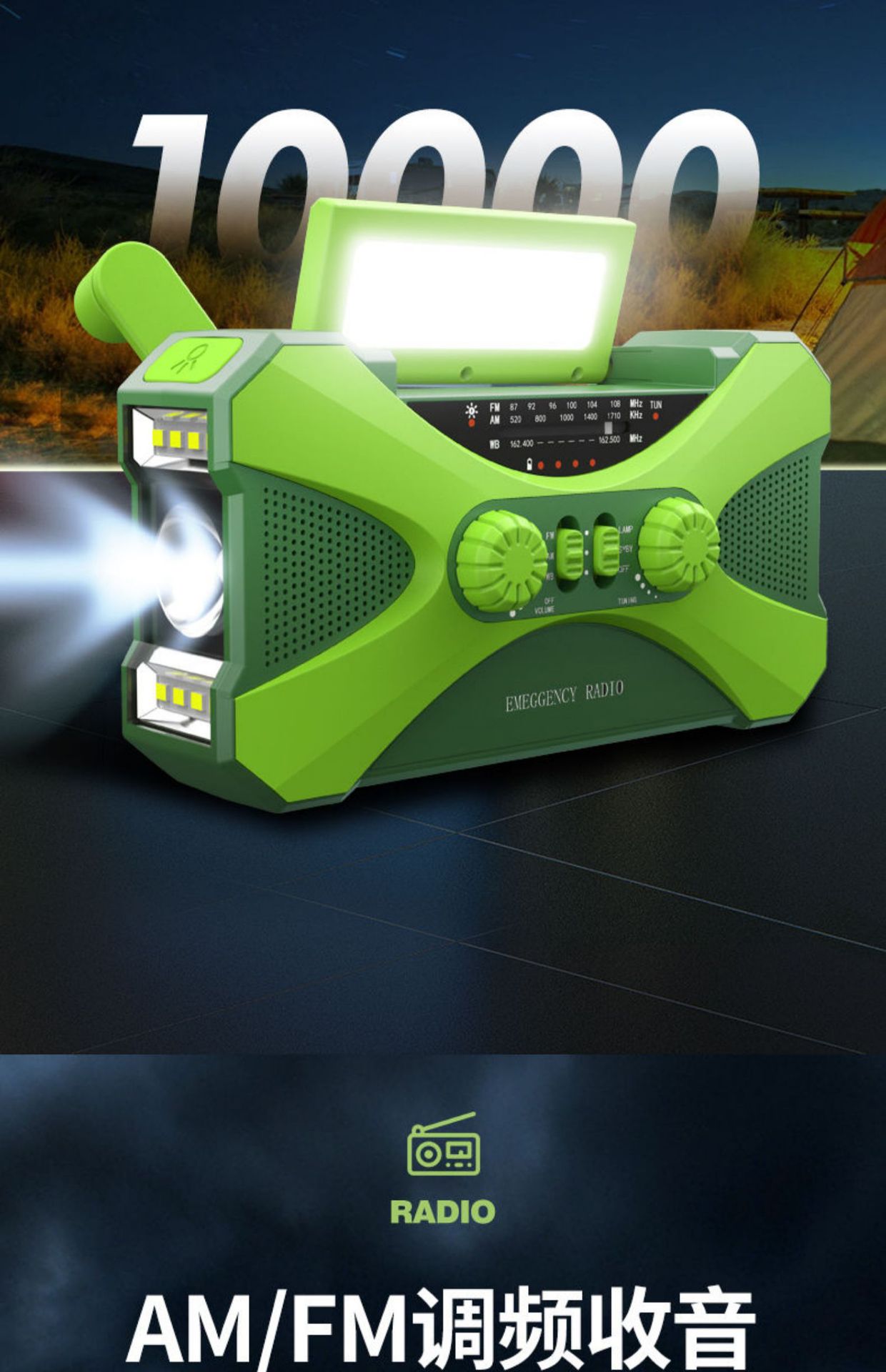 10000mAh足容 多功能应急收音机