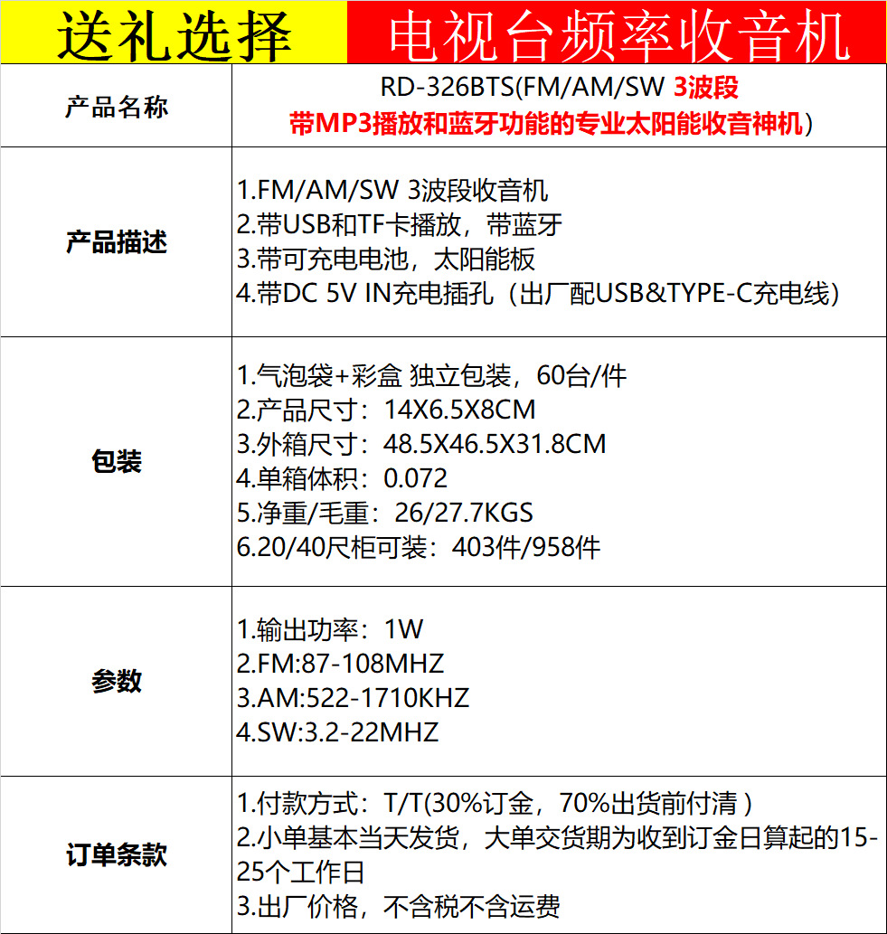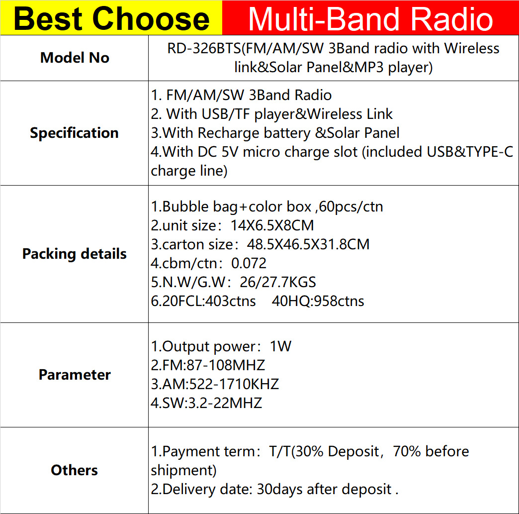 IS-F10BTS nuevo multifuncional transfronterizo tarjeta de banda completa altavoz Bluetooth radio de emergencia solar