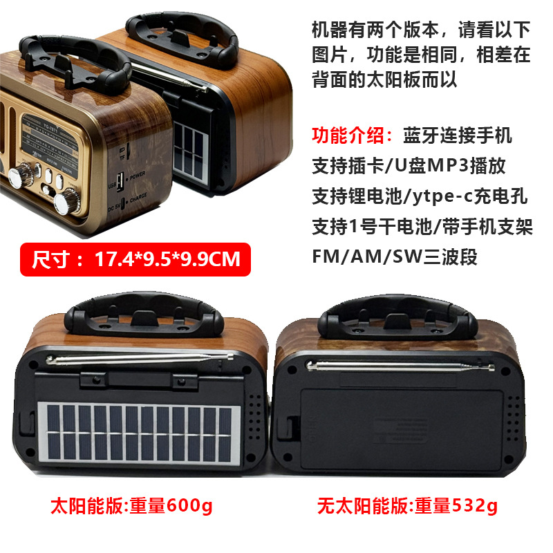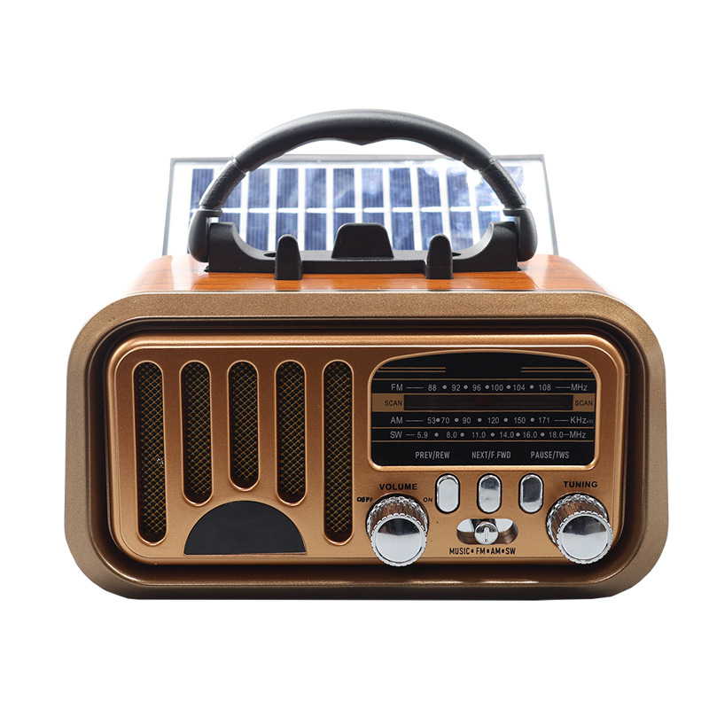 Transfronterizo nuevo estilo retro solar portátil multifunción radio de tres bandas radio con tarjeta audio Bluetooth