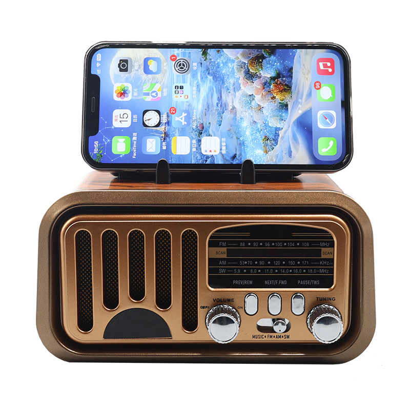 Los fabricantes venden tarjetas portátiles multibanda de grano de madera retro, radio con linterna recargable Bluetooth de alta calidad
