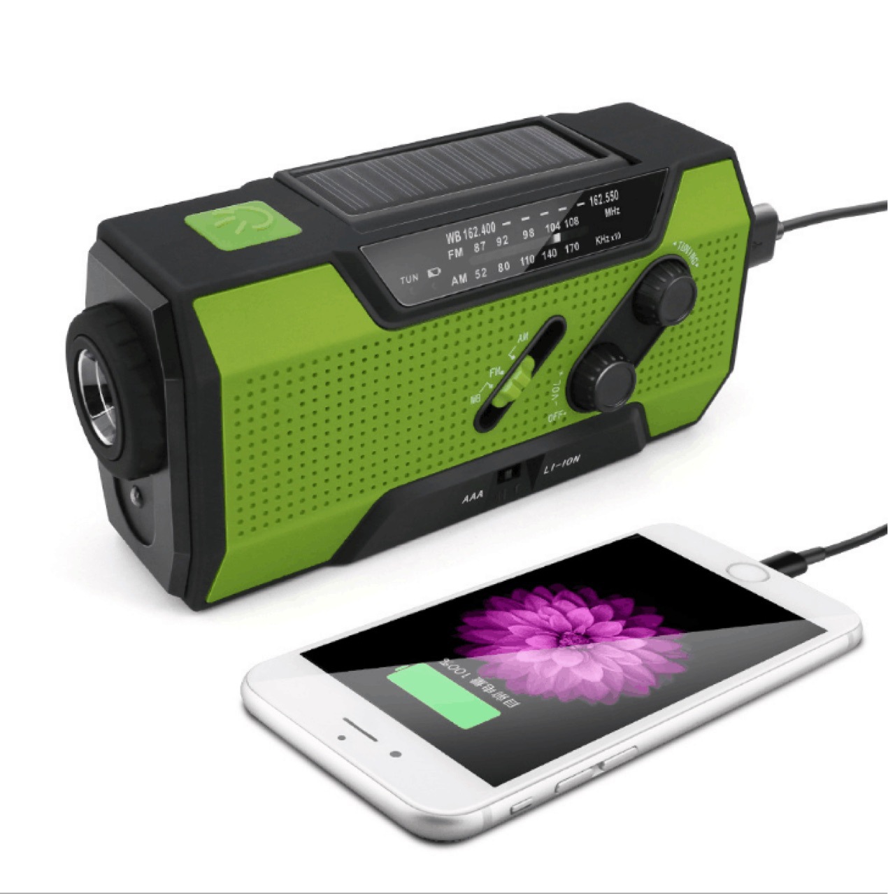 Linterna manual multifuncional al aire libre Linterna generadora de radio de carga solar de carga de material de emergencia
