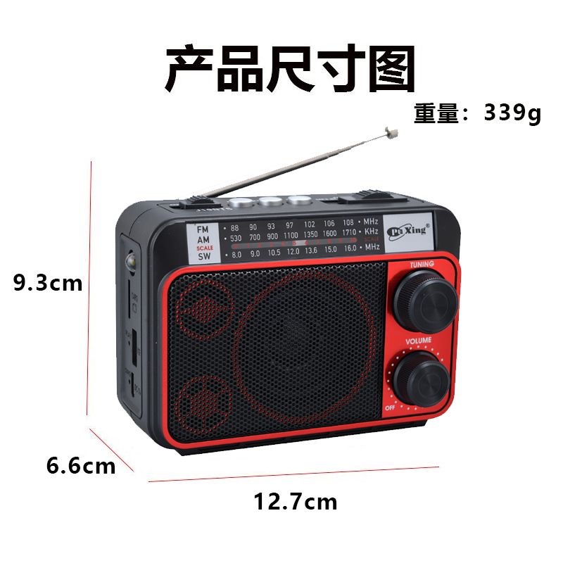 Nuevo transfronterizo de banda completa portátil gran radio de perilla de alto volumen para personas mayores recargables batería seca de alimentación
