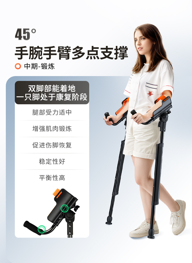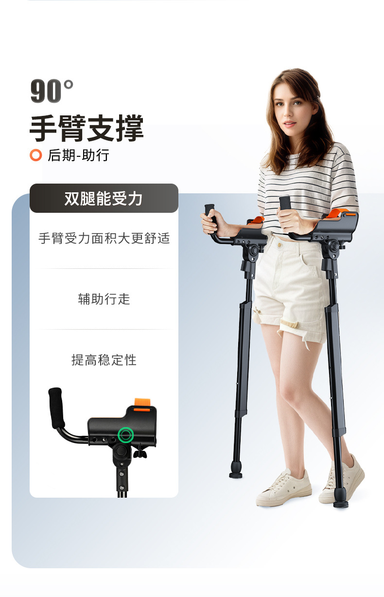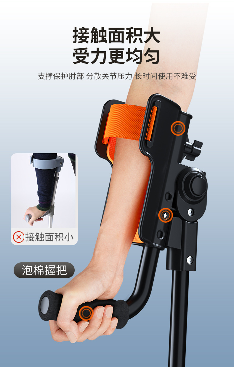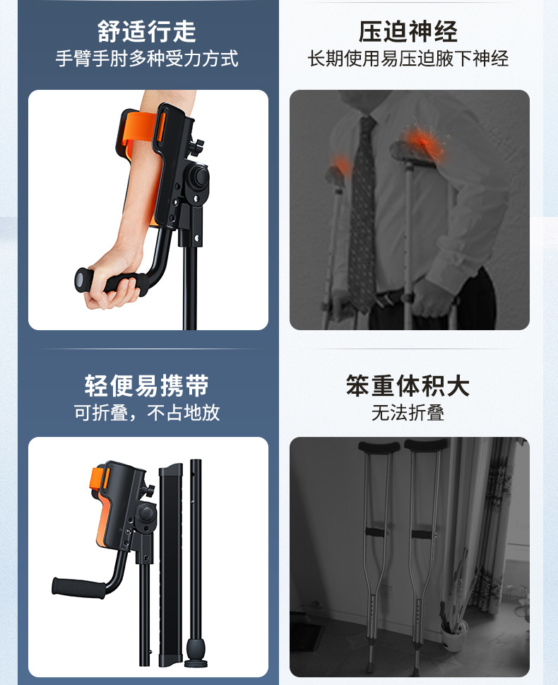 Muletas de brazo con codo médico, joven fracturado, lesión de tobillo, muletas plegables portátiles, altura ajustable