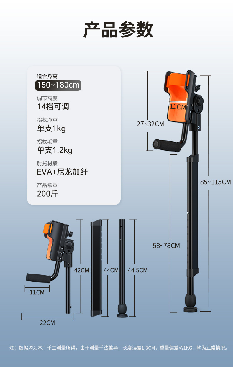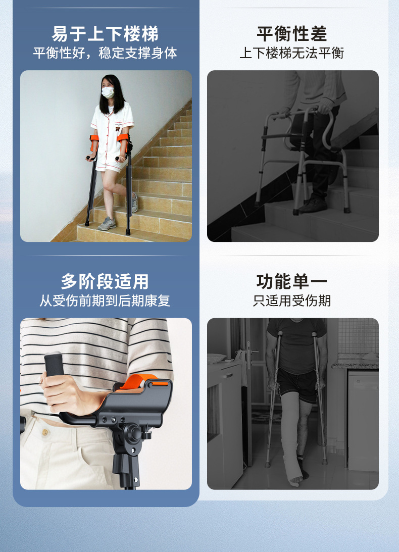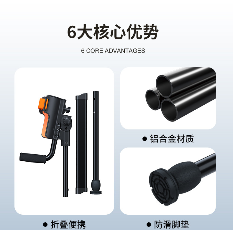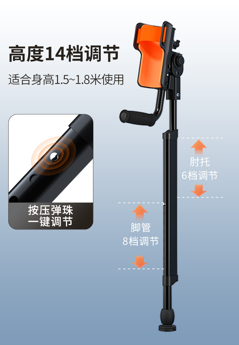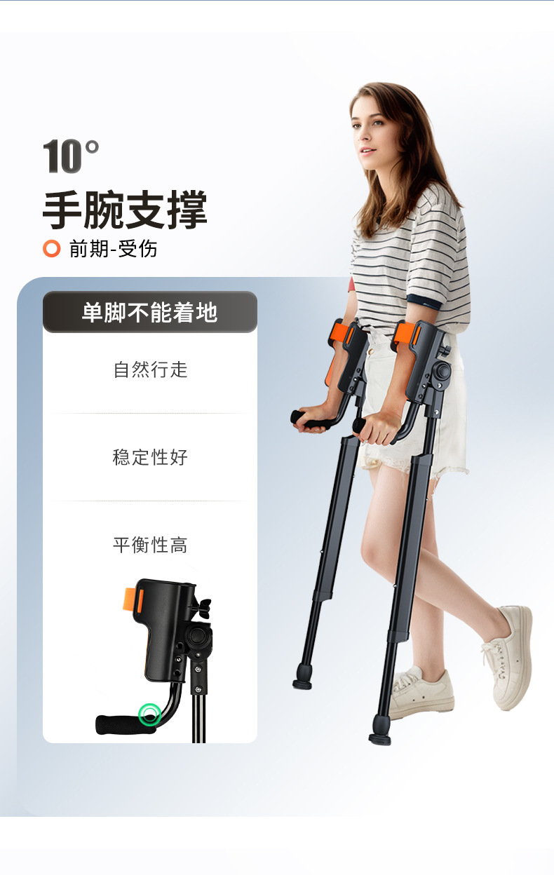 Muletas de brazo con codo médico, joven fracturado, lesión de tobillo, muletas plegables portátiles, altura ajustable