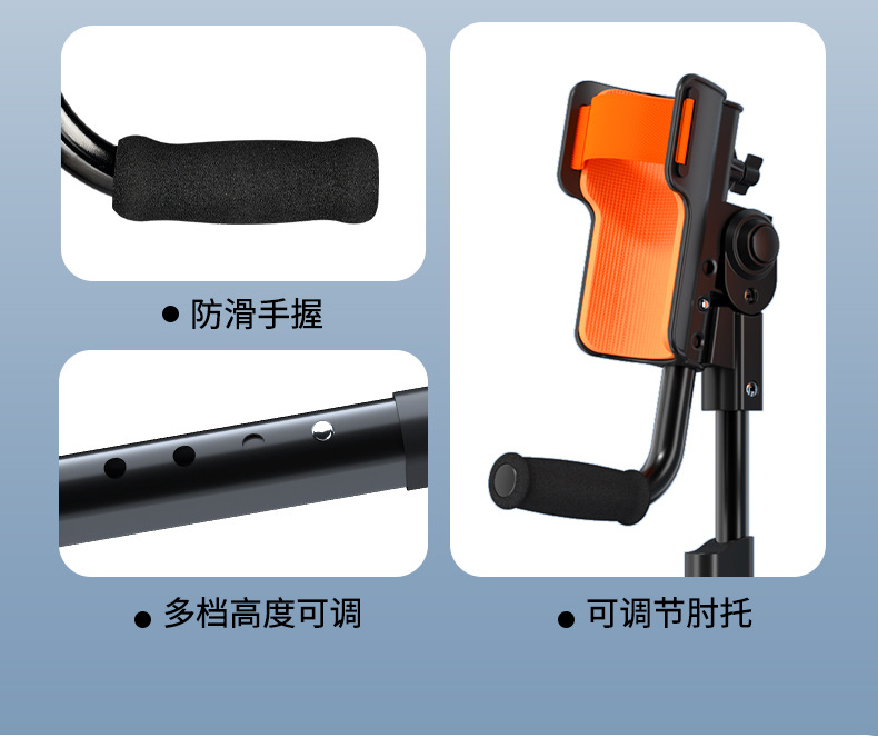 Grado médico muletas de cuatro esquinas anti-deslizante para personas mayores muletas de andador ligero al por mayor muletas de ajuste de altura domésticas