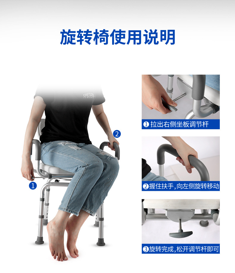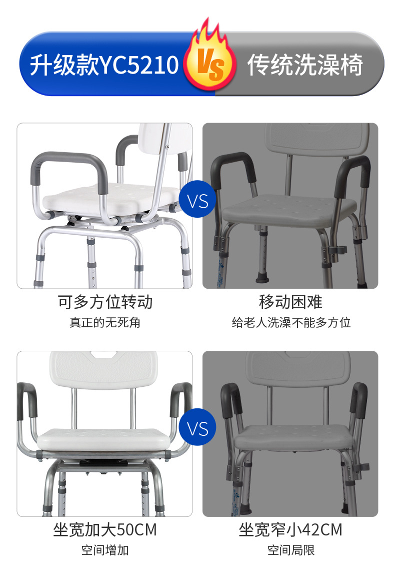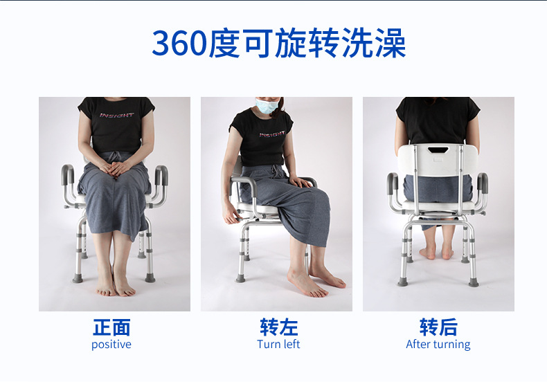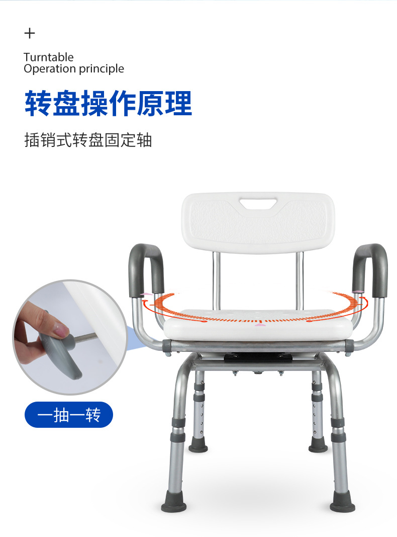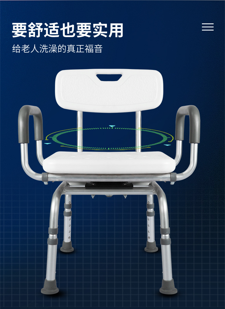 Baño giratorio para personas mayores, silla de baño ajustable, baño, ducha, silla, taburete, reposabrazos, altura de giro