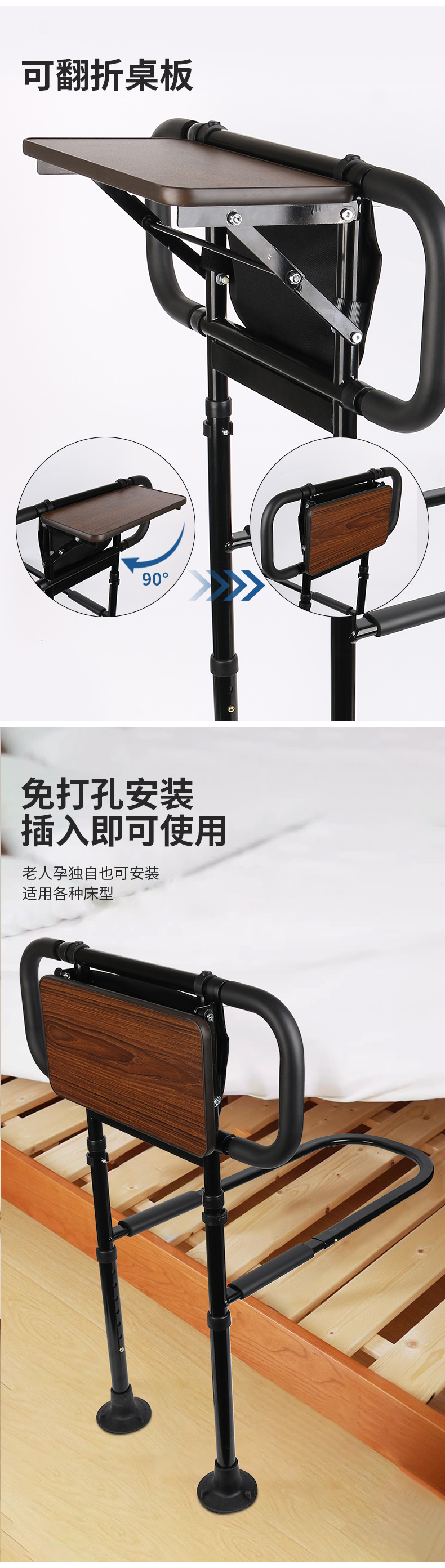 Barandilla de Cama sin Taladro con Mesa para la Seguridad de Personas Mayores, Ayuda Anticaídas para Levantarse, Barandilla Ajustable Móvil