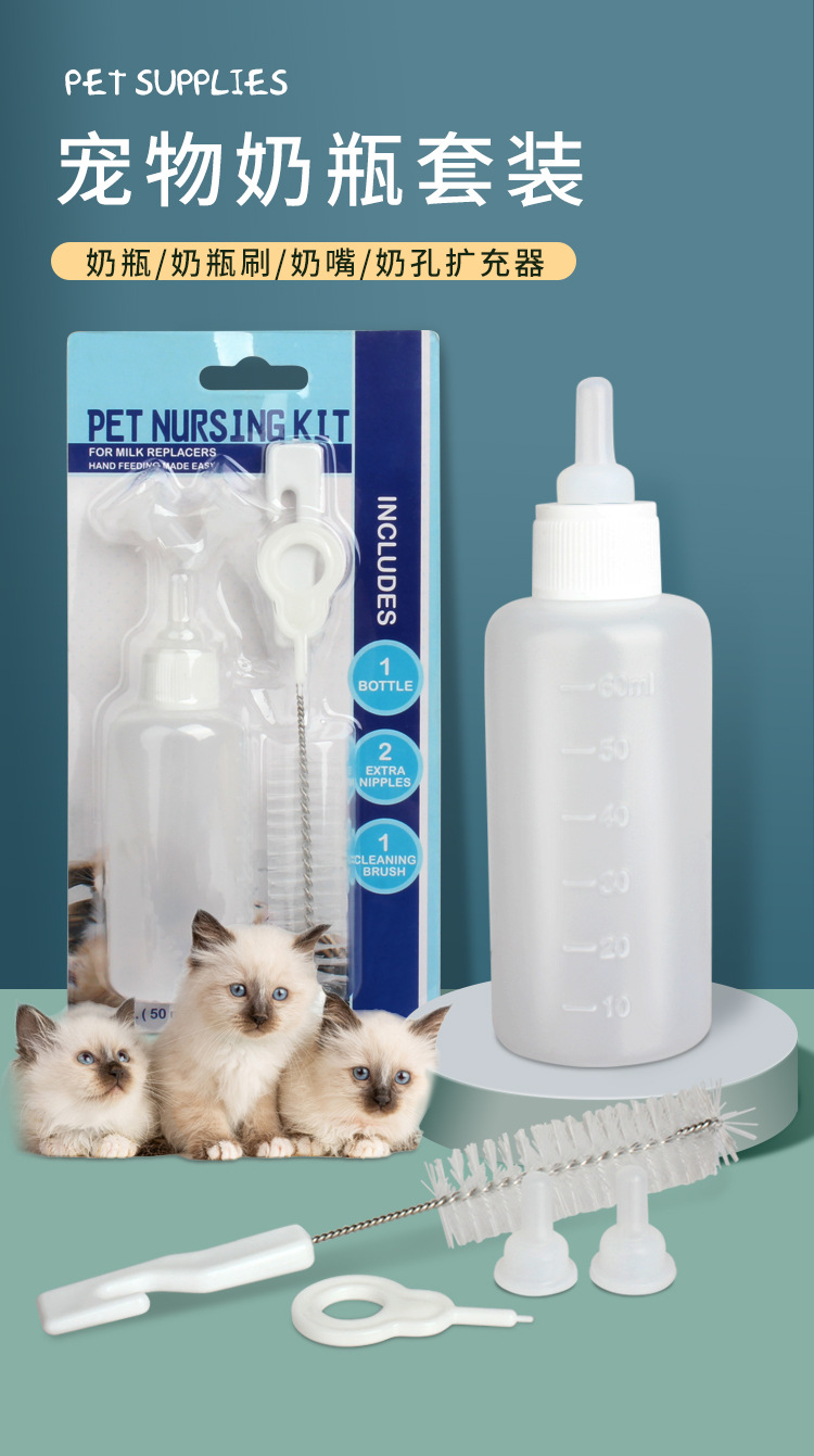 Set de biberones para alimentar perros y gatos, dispositivo universal para alimentar gatitos y cachorros, tetina de silicona con cepillo para biberones, biberones al por mayor