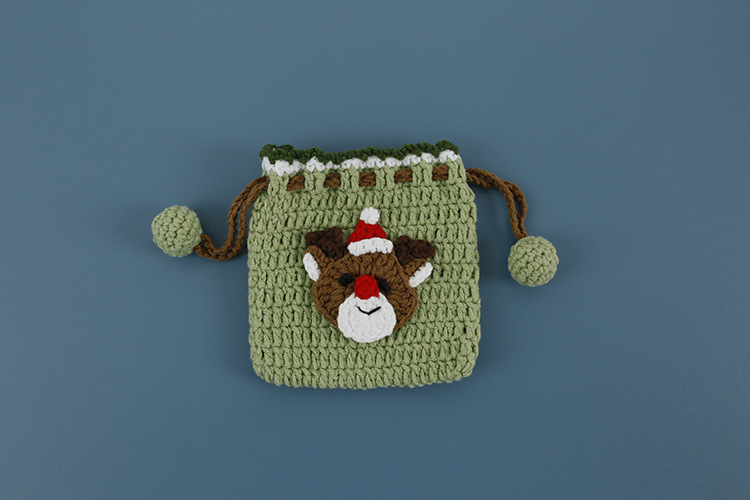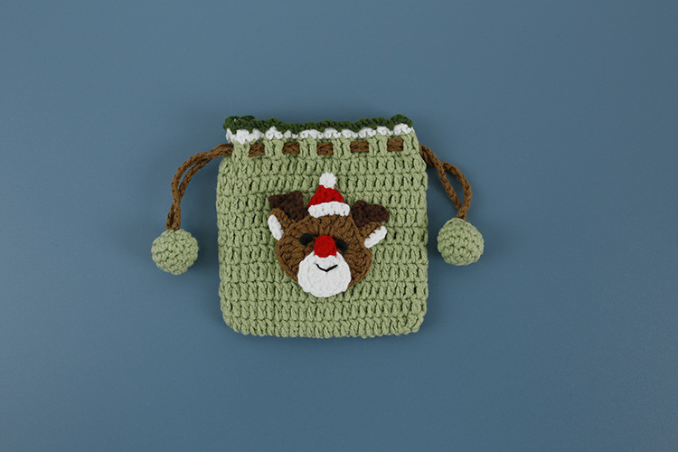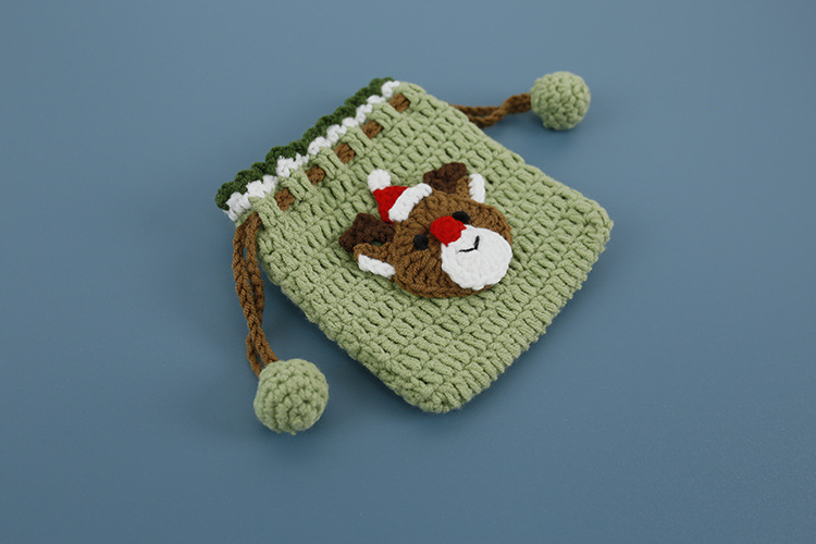 Navidad ciervos tejido a mano con cordón bolsillo tejido de lana de mujer de ganchillo monedero de dibujos animados exquisito Bolsillo pequeño producto terminado