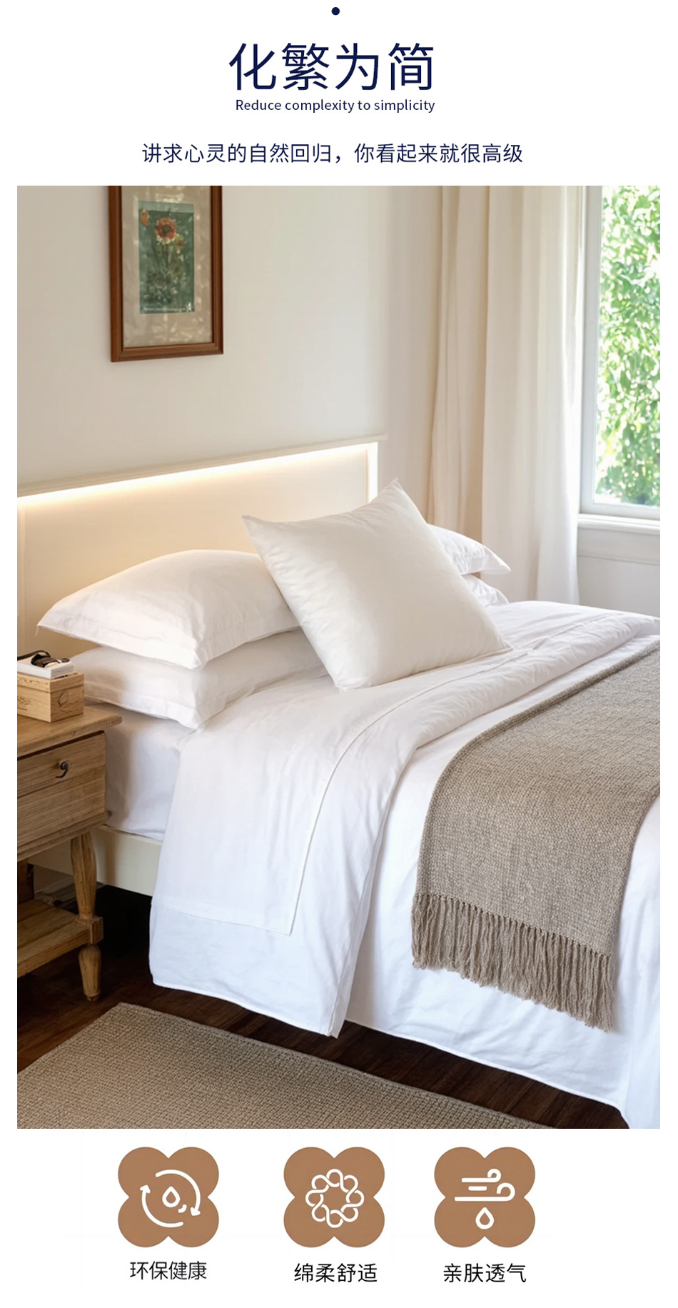 | Venta al por mayor de ropa de hotel | Personalización de cuatro piezas de blanco puro |