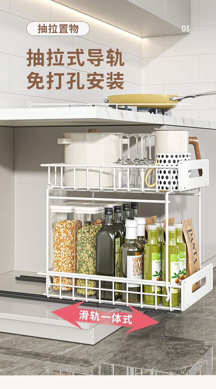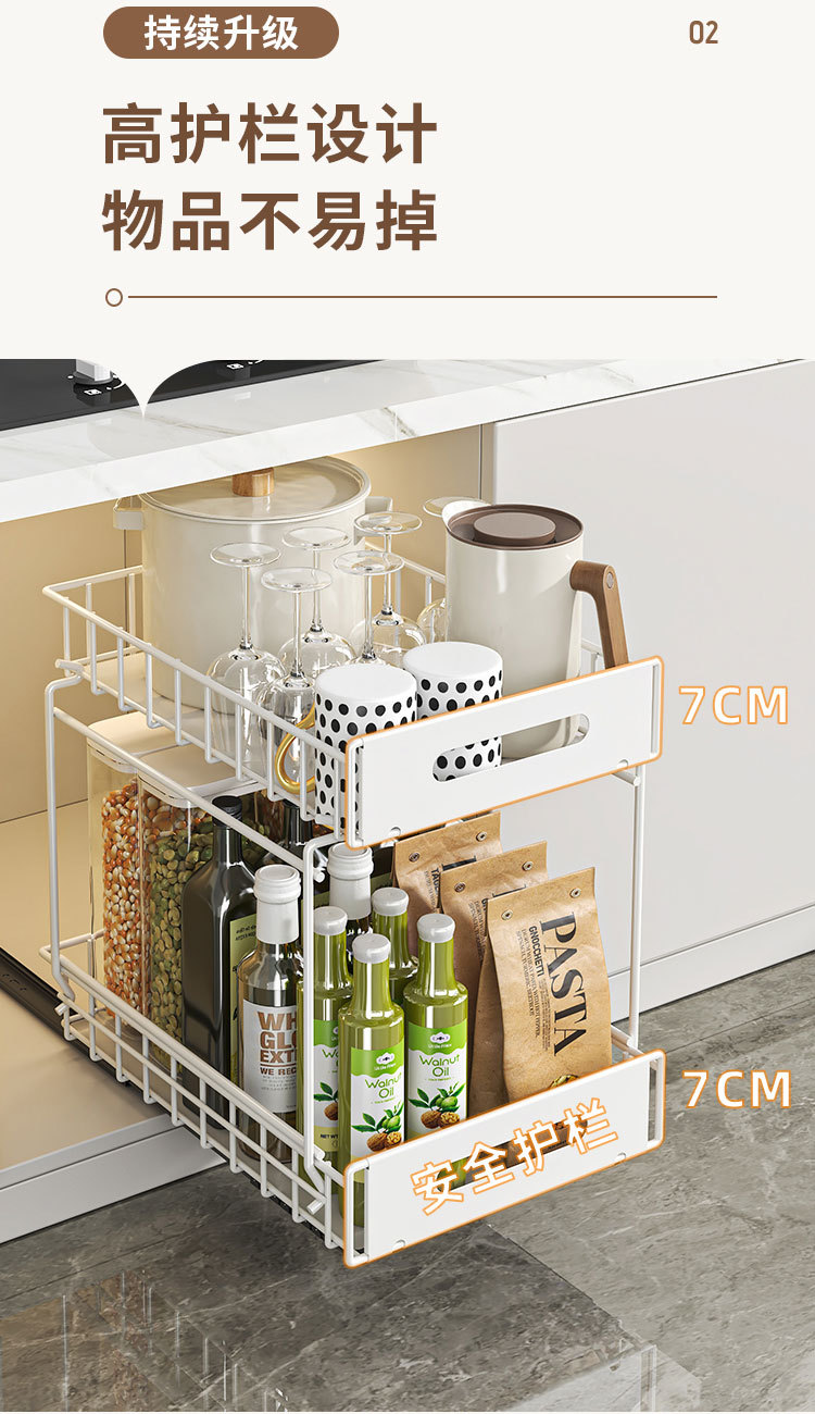 Estante de cocina Condimento multifuncional, comida enlatada, artículos diversos, canasta de almacenamiento de bocadillos, estante extraíble en capas para el acabado del gabinete