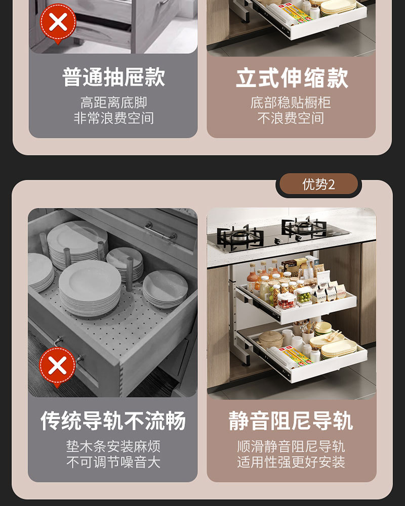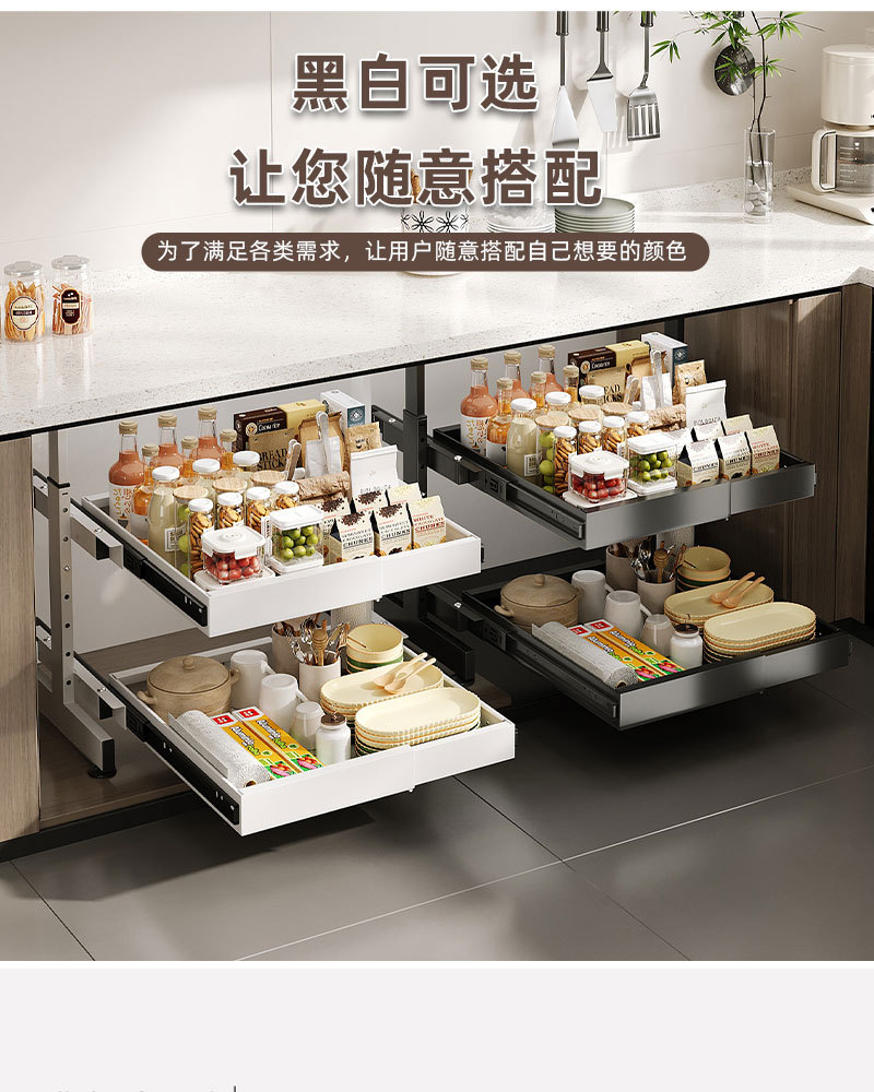 Estante de almacenamiento debajo del gabinete de cocina sin agujeros perforados, estante de cajón incorporado, estante de tazón, cesta de extracción telescópica de extracción de artículos diversos