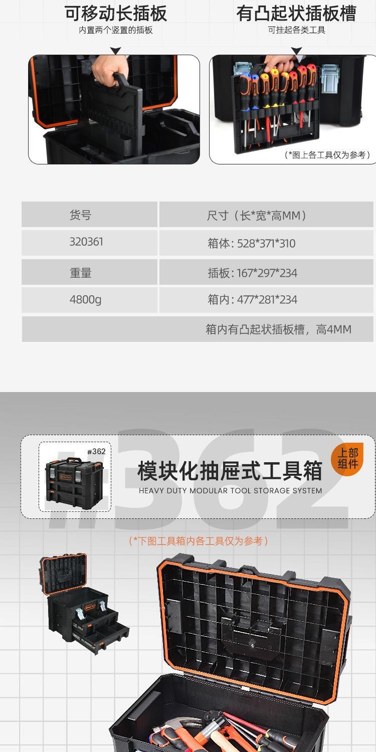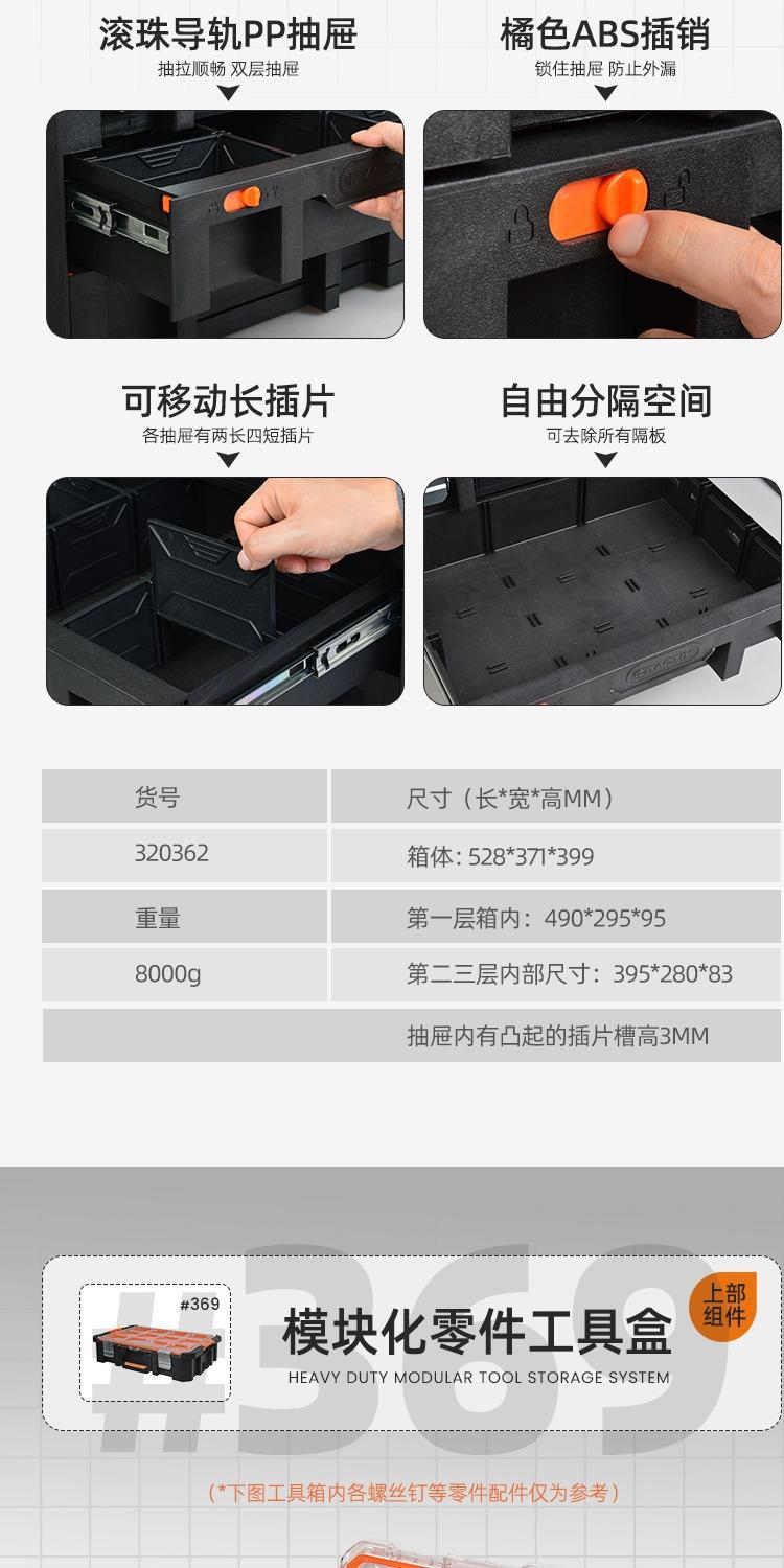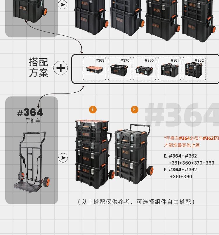 | Especificaciones y modelos | 2 en 1 Caja de acero inoxidable 321133, módulo - caja de piezas ¿ 360, módulo - caja de gran capacidad ¿ 361, módulo - caja de cajones ¿ 362, módulo - caja de trolley ¿ 365,20 "caja de acero inoxidable 321131, módulo - carrito ¿ 364,2 en 1 Caja de plástico 320310, módulo - cesta de almacenamiento ¿ 370, módulo - caja de piezas visuales ¿ 369, módulo - combinación clásica |