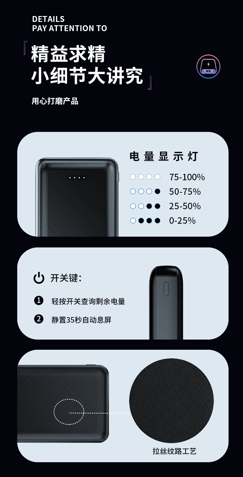 | Capacidad de alimentación | 10000 mA [96 * 63.9 * 25.5mm] |