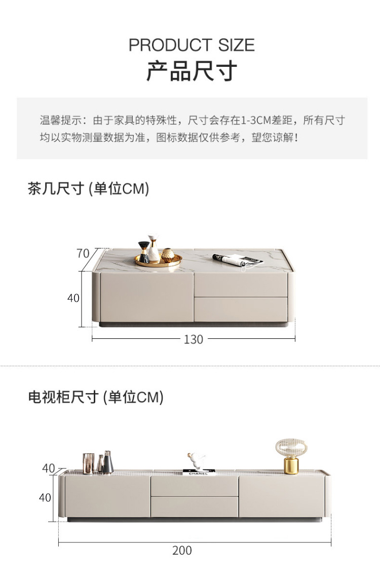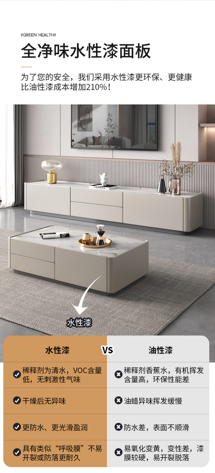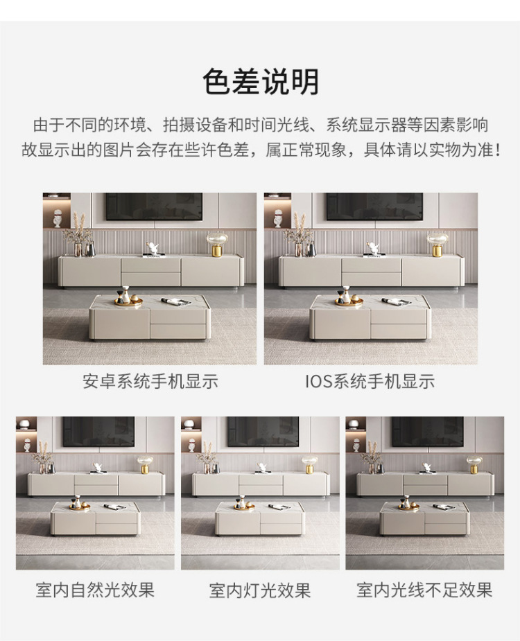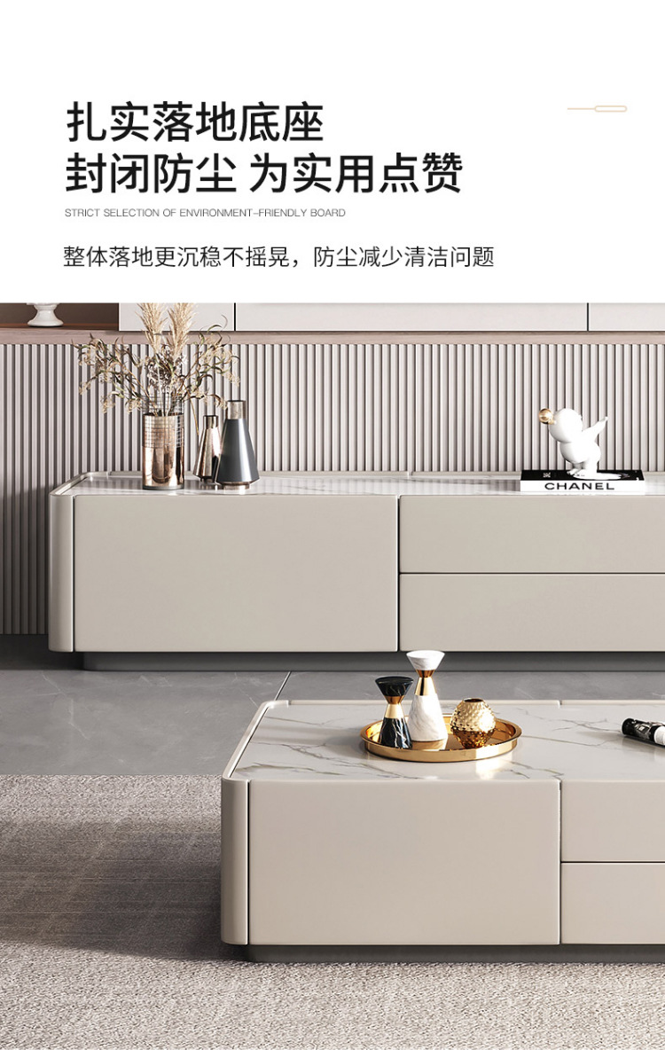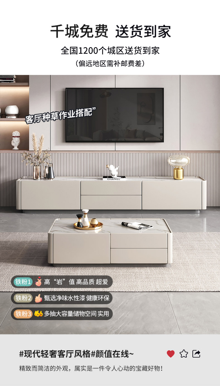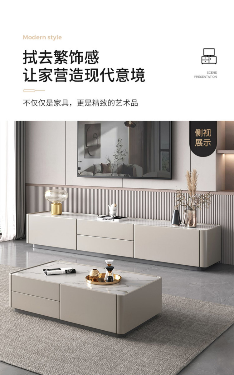 Mesa de té de tabla de roca simple combinación de gabinete de televisión de sala de estar moderna pequeña casa simple y ligera mesa de televisión de lujo