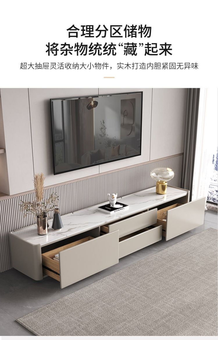 Nuevo mueble de TV suspendido de losa de roca de lujo ligero, combinación de traje premium de lujo ligero italiano, mueble de TV suspendido minimalista, aterrizaje