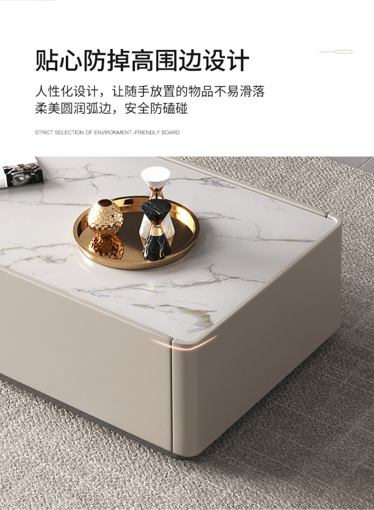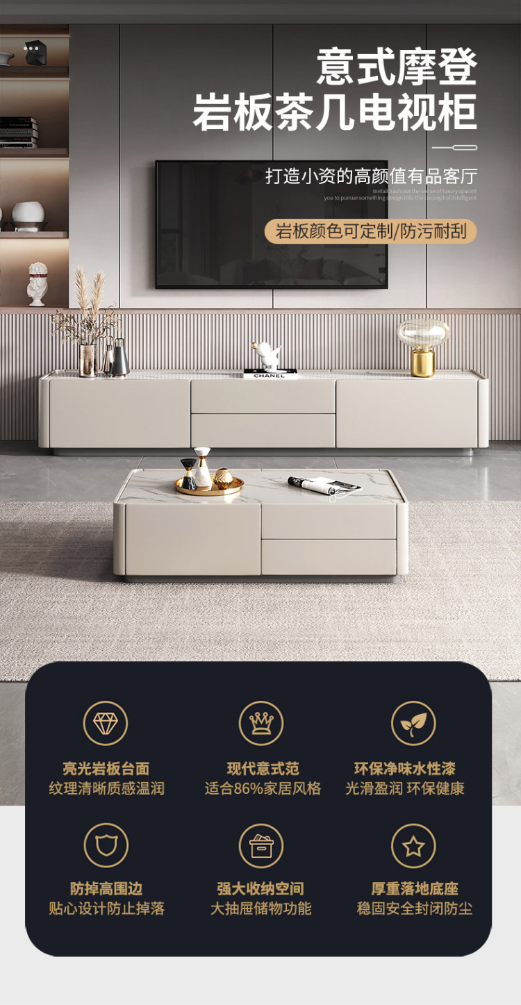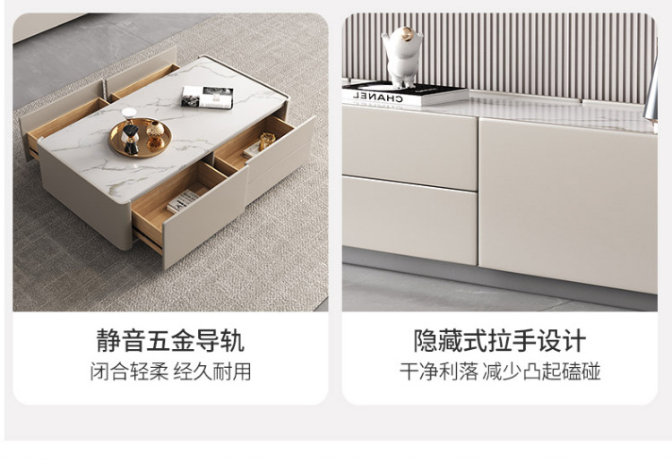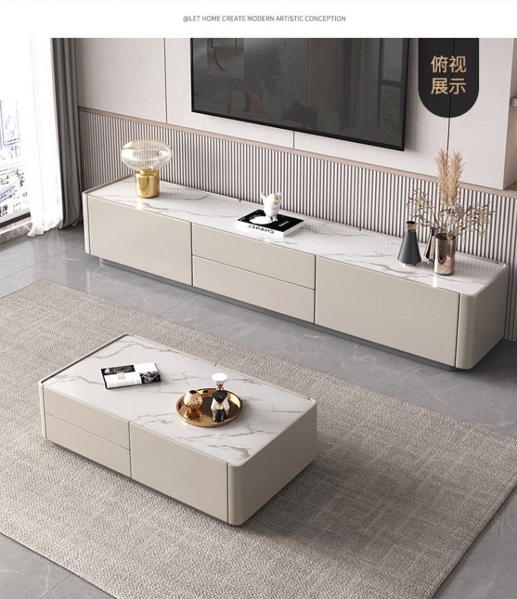 Italiano Rock placa mesa de té TV gabinete combinación moderno minimalista hogar nórdico lujo ligero pequeño apartamento salón estilo crema